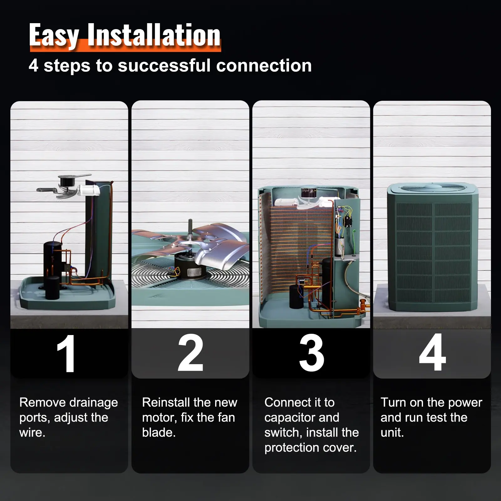 VEVOR Condenser Fan Motor OGD1016, 1/6 HP 208-230V Condenser Fan Motor 1075RPM, OEM Standard Upgraded Replacement Condenser Motor Reversible Rotating, Explosion-proof CBB65 5F/370V CapacitorFlawless PerformanceExplosion-Proof CapacitorReversible RotationExtended CableOverheat ProtectionLow-Noise DesignRotational Speed: 1075 RPM, Horsepower: 1/6 HP, Voltage: 208-230V, Product Weight: 9.04 lbs/ 4.1 kg, Frequency: 60Hz, Shaft Diameter: 0.5/12.7 mm, Stud Pattern: 5.2x 5.2/132x132 mm, Current: 1.0A, Power: 120W