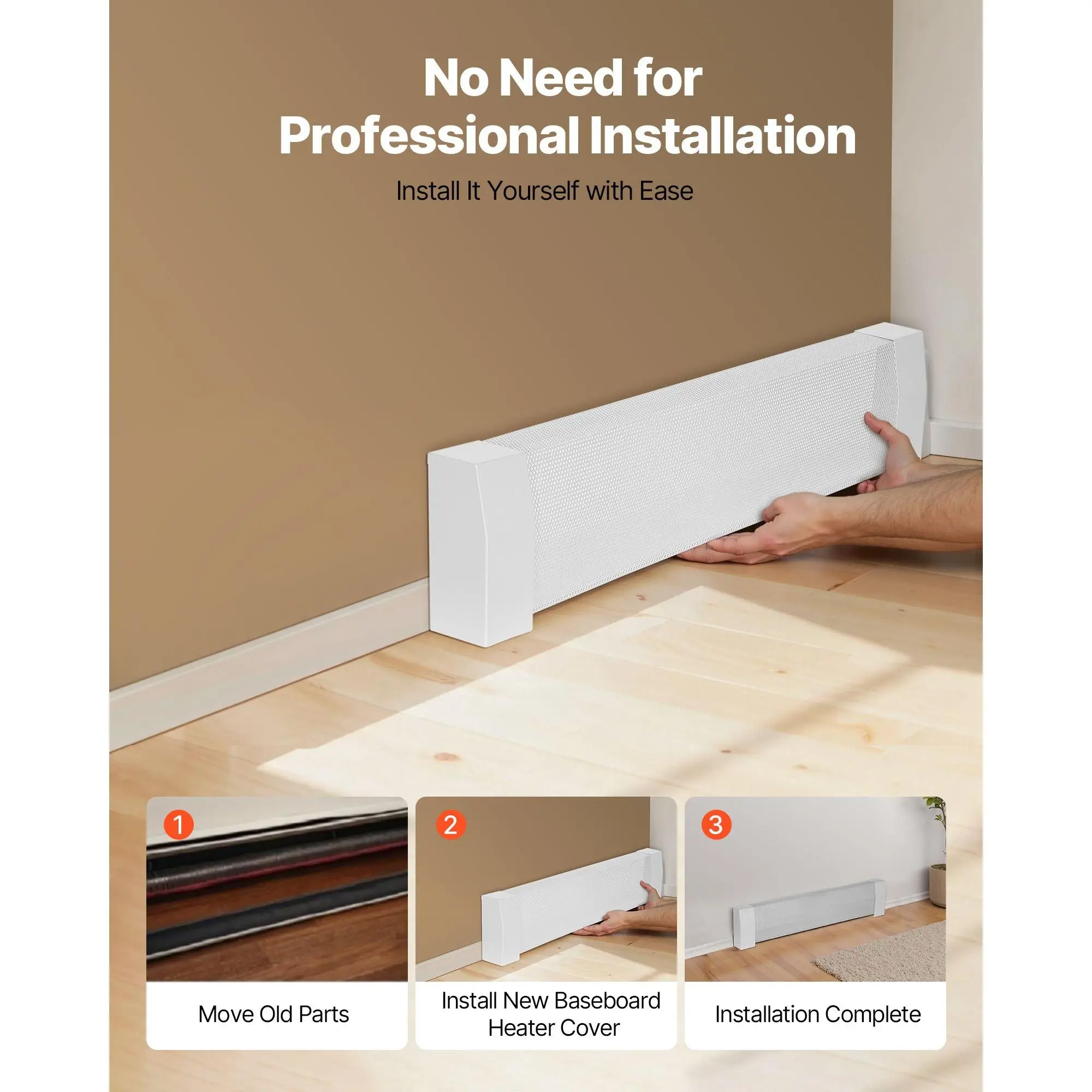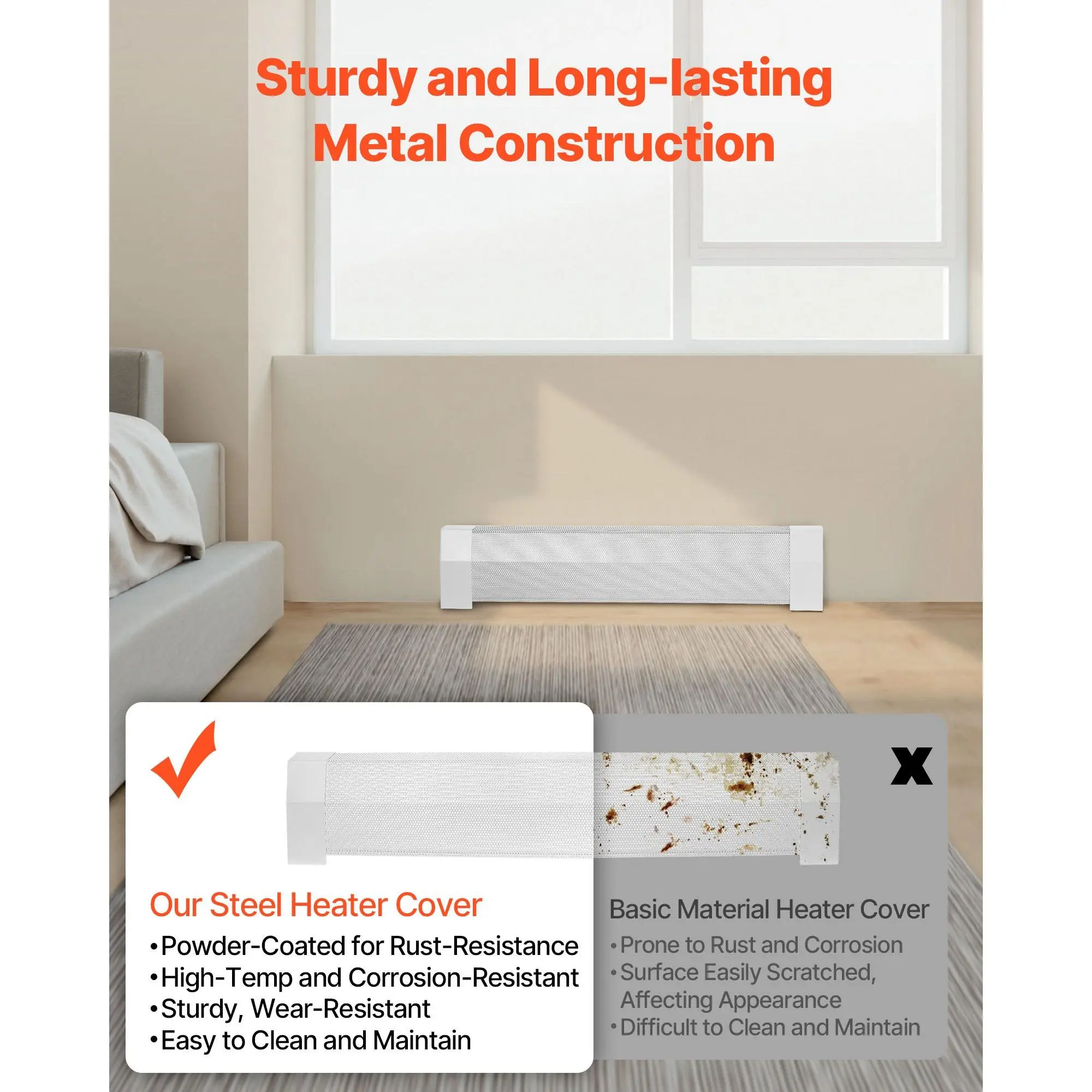 Made from sturdy steel, this radiator enclosure ensures long-lasting use without deformation. It also includes scratch-resistant end caps to avoid damage during everyday use. The optimized vent design avoids overheating, extends the heater's lifespan.