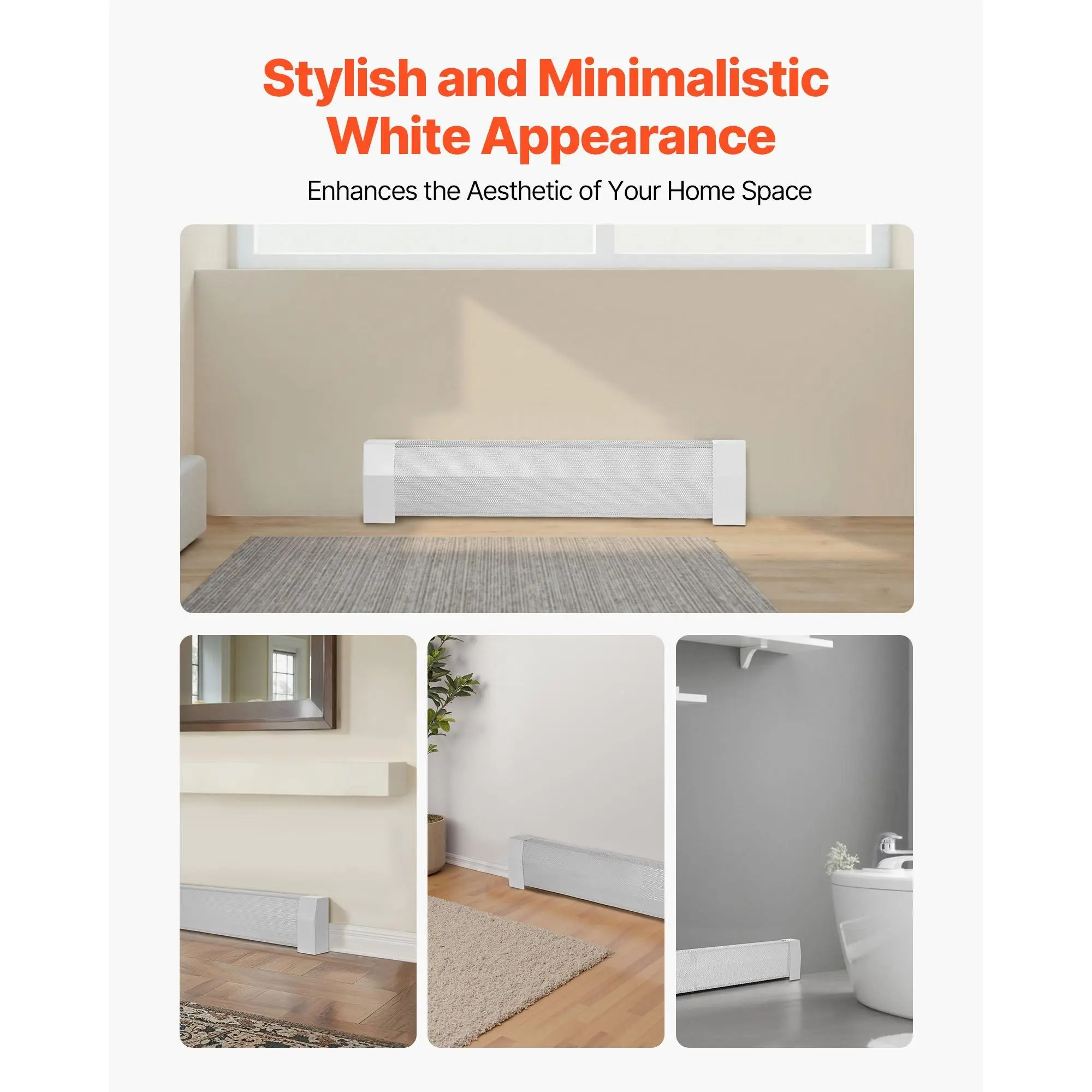 This baseboard heater cover replacement fits various heaters, made from sturdy steel with a powder-coated finish for easy cleaning. The efficient ventilation avoids overheating and ensures even heat distribution. Easy to install, its sleek white design complements any home decor.