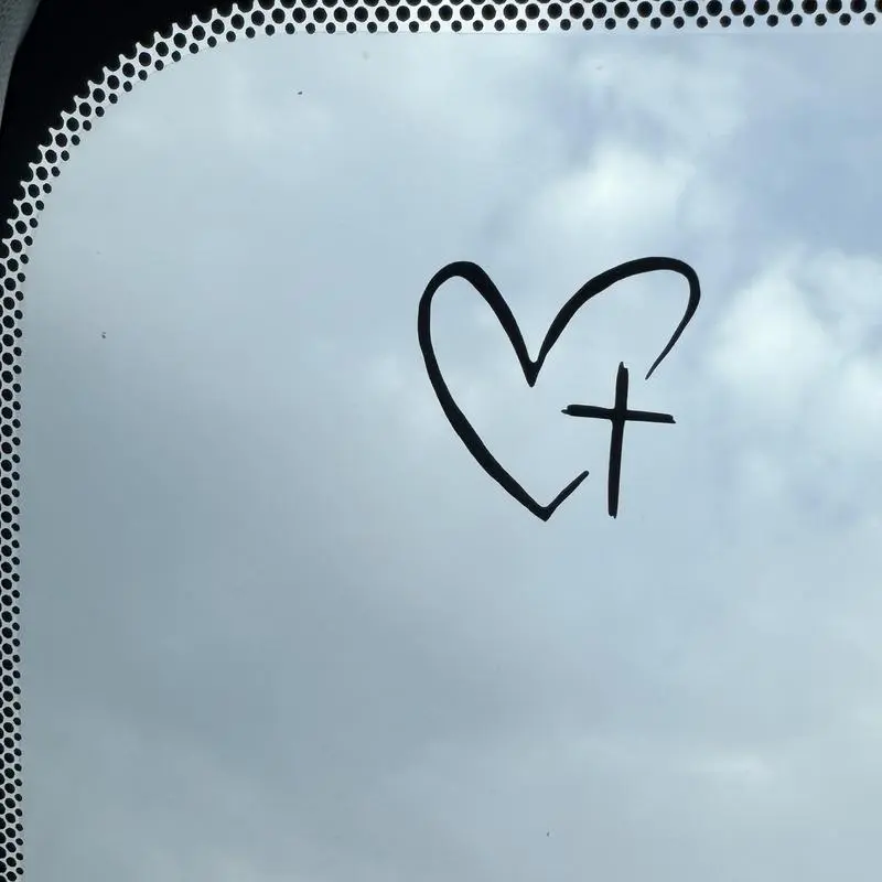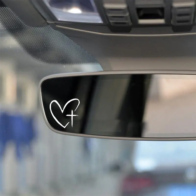 4pcs Heart & Cross Pattern Car Mirror Sticker, Car Rearview Mirror Decal, Vinyl Die Cut Decal, Universal Car Exterior Accessories