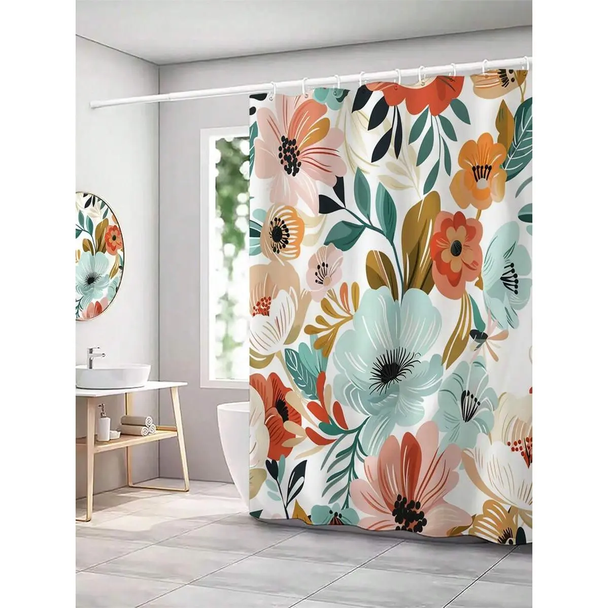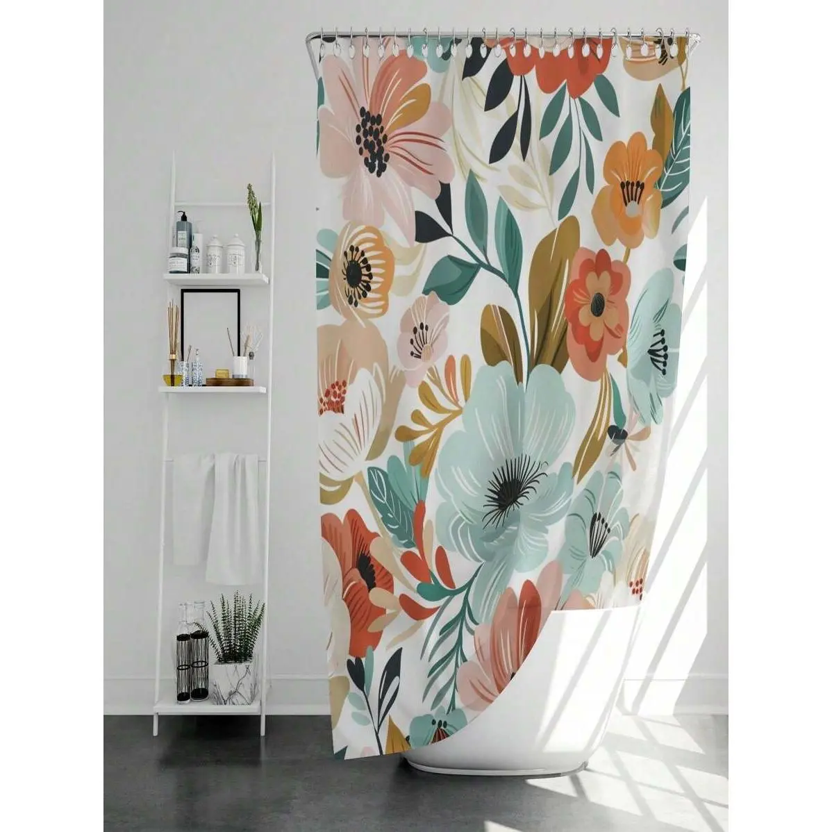 1pc Flower & Plant Patterned Bathroom Shower Curtain Waterproof & Mildew Resistant For Bathroom/Powder Room Home Bathroom Decor Fall Decor Bathroom Accessories Back To School