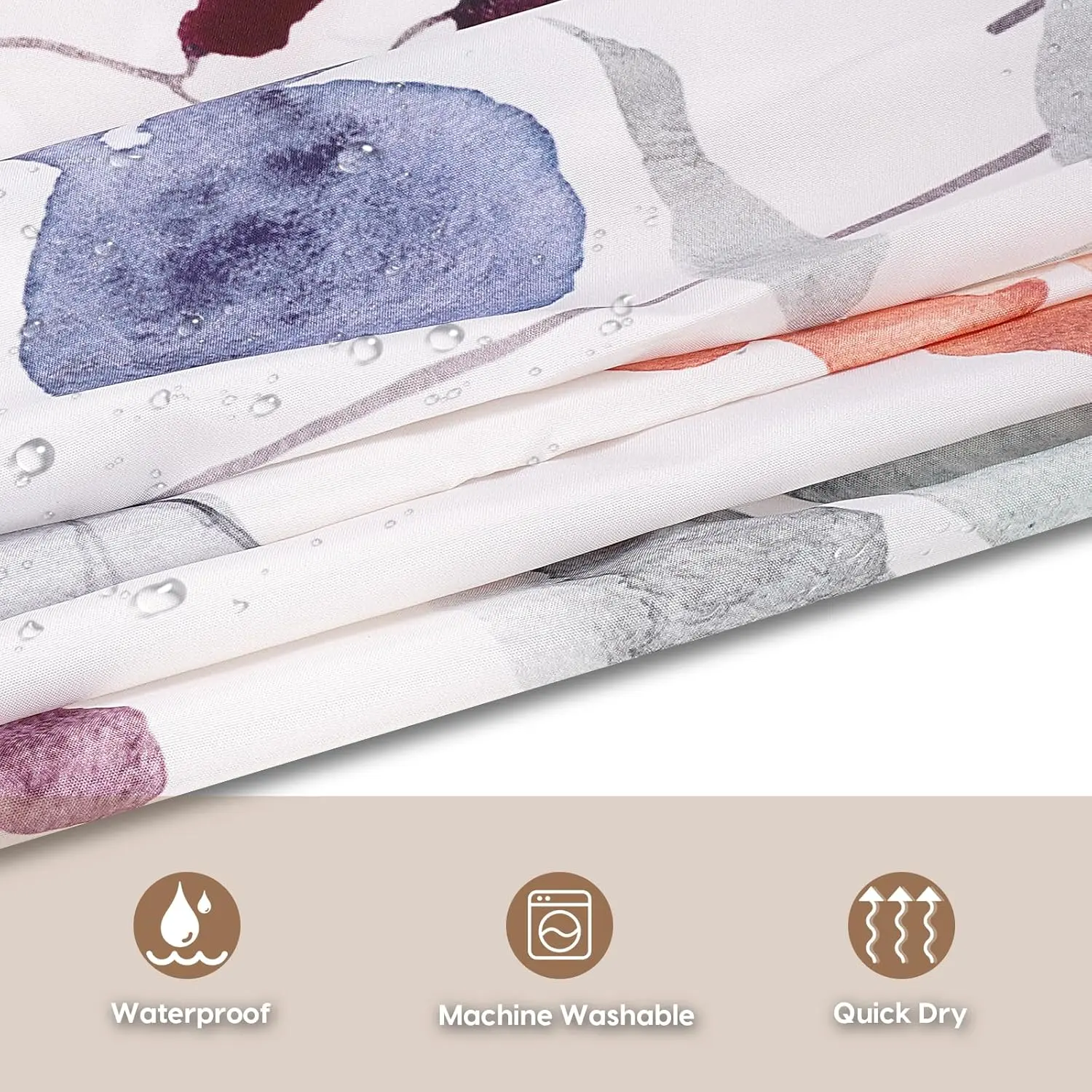 Floral Fabric Shower Curtain, Beige Brown Grey Plant Shower Curtains for Bathroom, Waterproof Bathroom Curtains, 72" W x 72" H