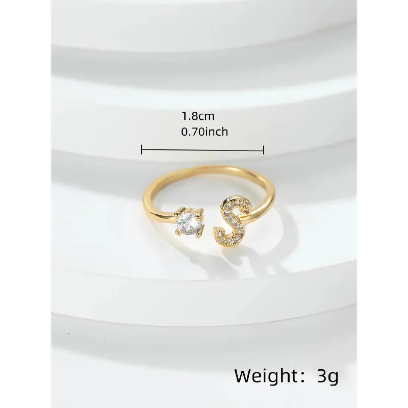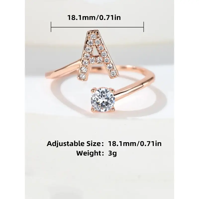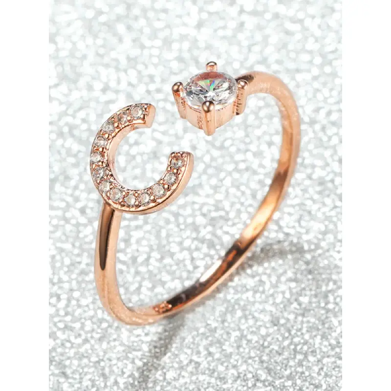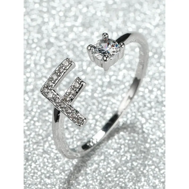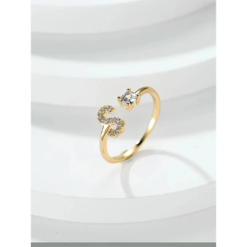 Summer 2026 Creative Letter Cuff Ring with Artificial Zircon Decor, Adjustable Open Ring, Fashion Jewelry for Women & Girls