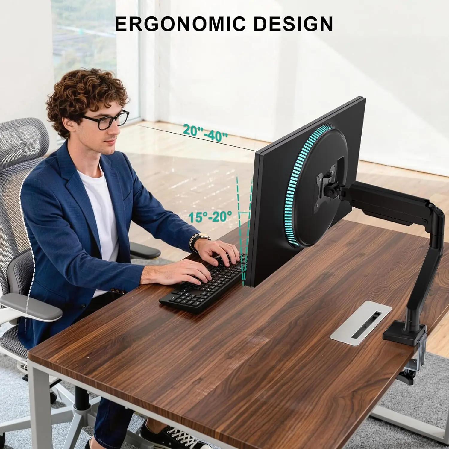·Ergonomic Viewing Comfort: Single monitor mount allows you to extend your screen out by 19.3" and raise the arm up to 17.3" above the desktop by adjusting gas spring, allowing optimal screen positioning for reduced neck, eye and back strain