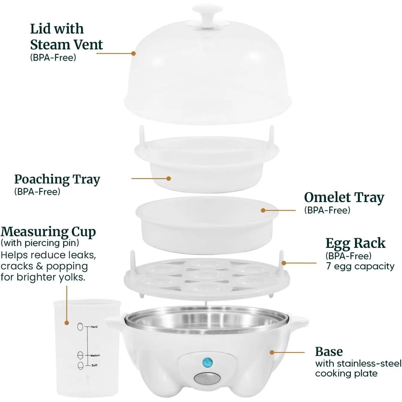 Easy Electric Egg Poacher, Omelet & Soft, Medium, Hard-Boiled Egg Cooker