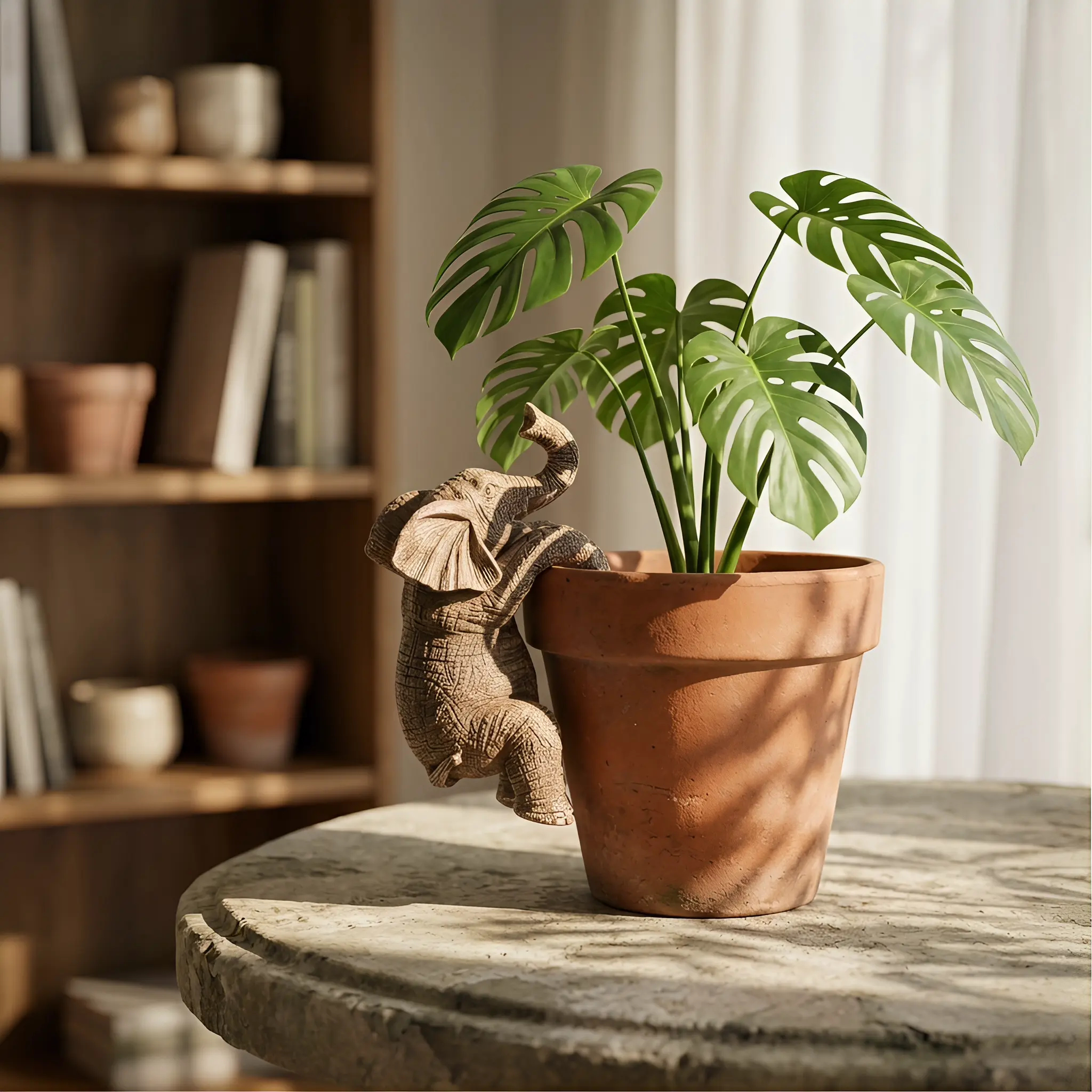 Elephant Hanging Sculpture Planter 1 pc Vertical Garden Flower Pot Resin Art Craft Home Decoration Small Succulent Plant Holder Porch Balcony Decor Gift for Elephant Lovers Hangable Ornament