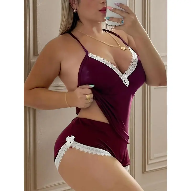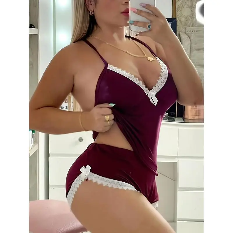 2026 New Lingerie Seductive Halter Ruffles Sexy Home Two-piece Set, Women's Pajamas, Lingerie, The Summer Gift Womenswear Fabric