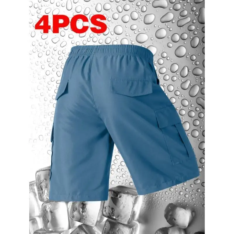 4pcs Men's Casual Cargo Shorts-Loose Fit, Drawstring Waist, Multi-Pocket Design, Polyester Fabric, Solid Colors Black, Beige, Light Blue, Dark Gray for Spring & Summer Breathable Athletic Jockstrap Pack Plus Size Sports Gym Wear Gray Joggers Gift (Sheets)