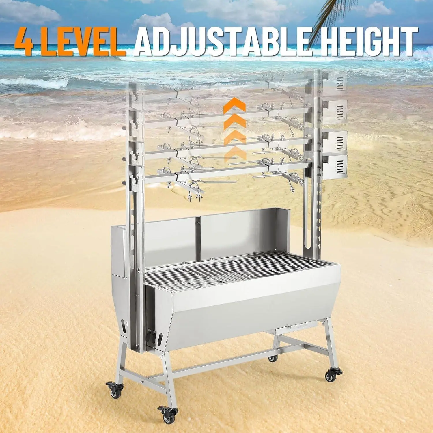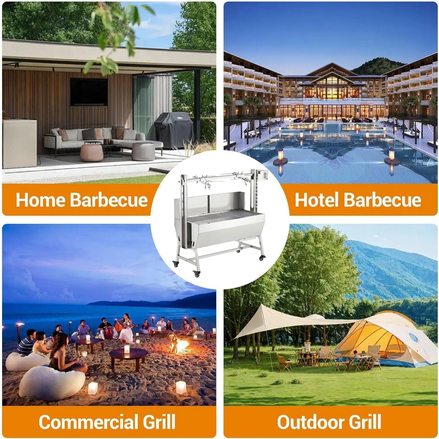 Versatile Application: Our rotisserie grill is perfect for restaurants, family gatherings, outdoor barbecues, picnics and camping. Ideal for grilling delicious beef, chicken, shrimp, whole hogs and lambs. Enjoy delicious grilled meat anytime, anywhere!