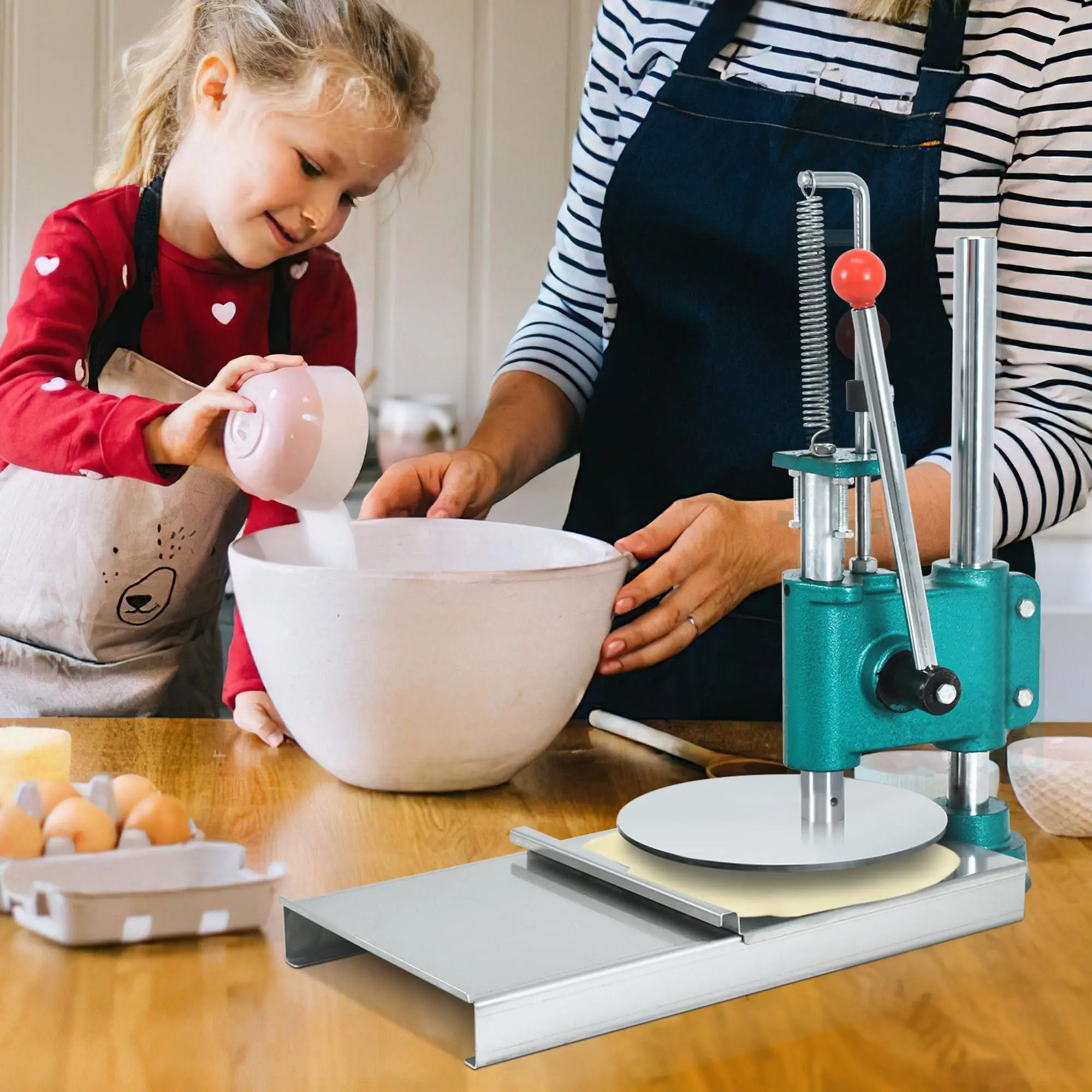 Even Pressing: The vertical pressing design ensures even dough pressing. The widened base enhances household pizza pastry's stability, and after each press, the high-strength automatically rebounds, pressing dough to a 5 mm thickness with uniform results.