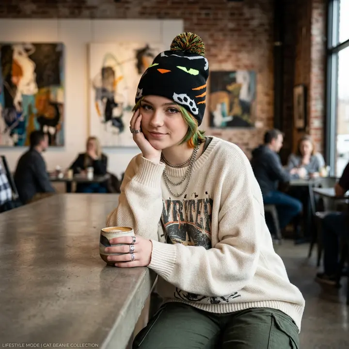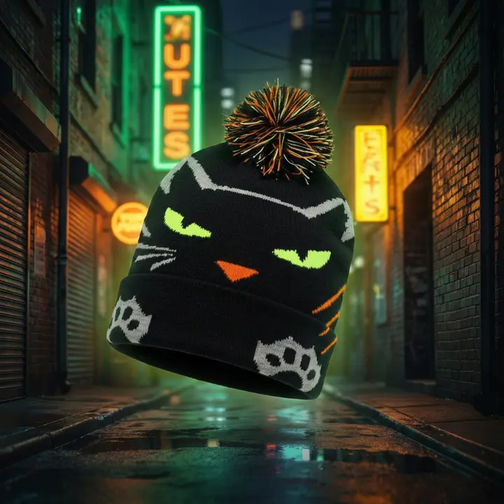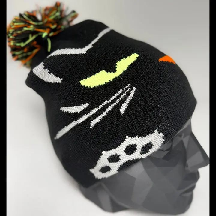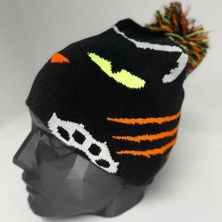 This cat beanie combines cuteness with a bold edge. Handcrafted from soft, warming yarn, it features striking claw-mark details. The vibrant pom-top adds a fierce personality. Ideal for anyone, this one-size-fits-most beanie is your go-to accessory. Show your wild side with this cozy and attitude-filled beanie.
