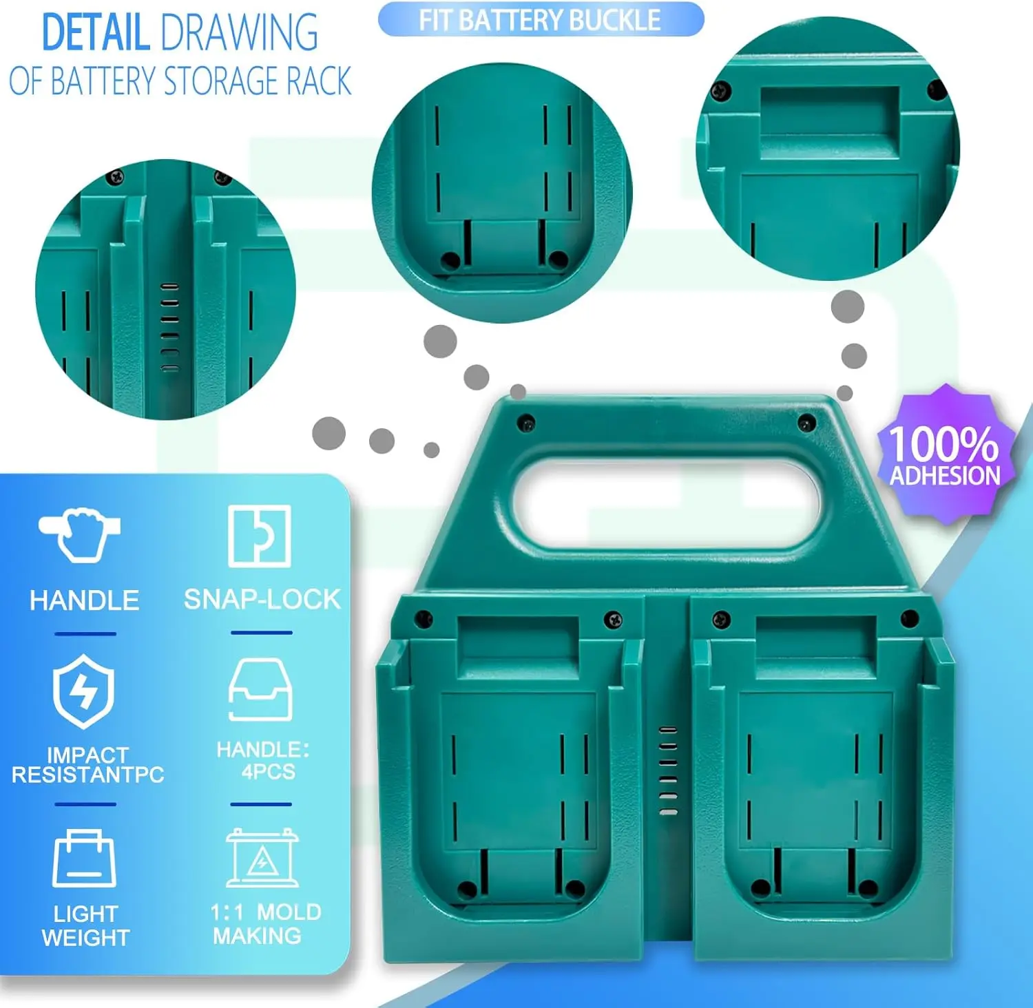 or even mounts on the wall. Perfect for work vans or on-the-go contractors. ️ Heavy-Duty Design:Made of high-impact ABS material, built to handle tough jobsite conditions. Your batteries stay protected from bumps, drops, and dust.