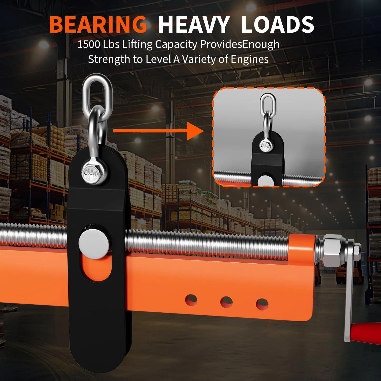 Engine Load Leveler,Engine Hoist Leveler with Ball Bearing,2 Chains and Adjustable Handle,Engine Hoist Shop Crane Accessory for Up to 1500lbs Orange
