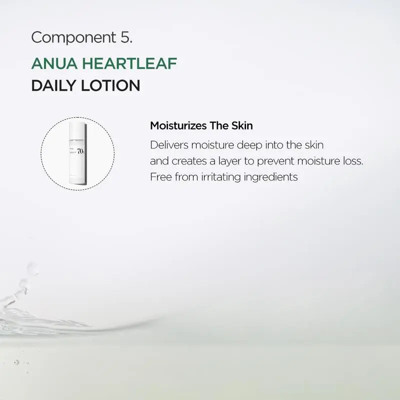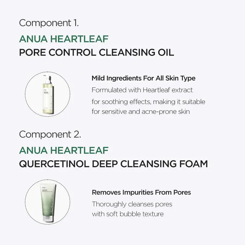 The set starts with the Anua Heartleaf Cleansing Oil, which effectively removes makeup and impurities without stripping your skin of its natural oils.Follow it up with the Quercetinol Pore Deep Cleansing Foam, which deeply cleanses your pores to prevent breakouts and blackheads.
