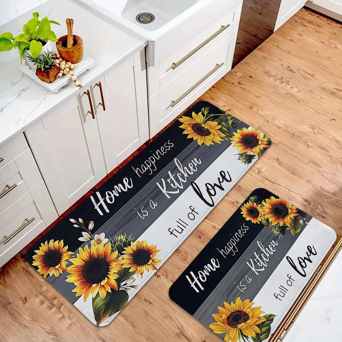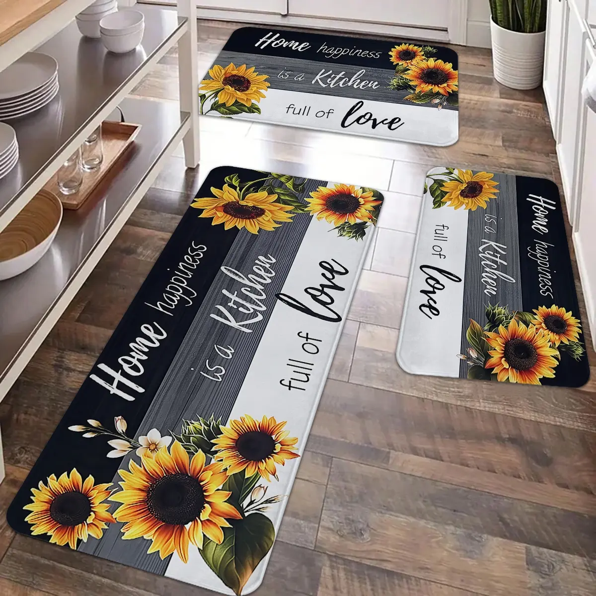 5. Sunflower Kitchen Anti slip Carpet Floor Mat, Retro Floor Printed Kitchen Anti fatigue Floor, Soft and Comfortable Flannel Floor, Suitable for Kitchen, Laundry Room, Bathroom, Living Room, Room Decoration Floor