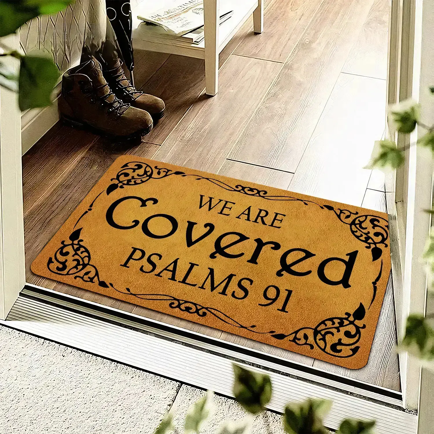 Letter Pattern Door, We Are Covered Psalms 91 Print Non-slip Floor, Decorative Mat for Home, Religious Doormat
