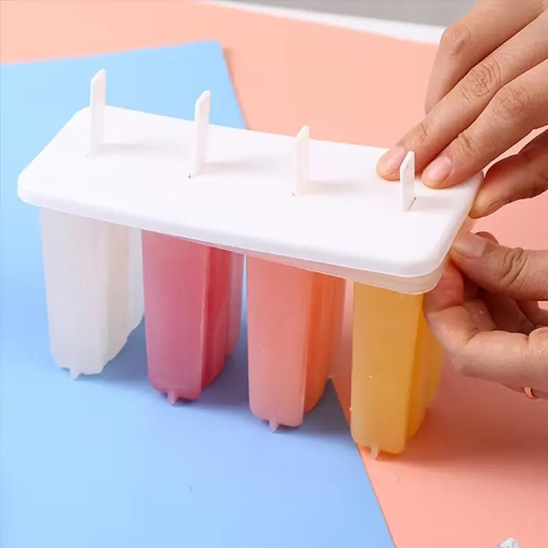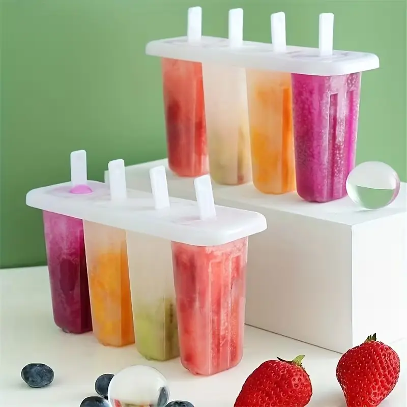 2pcs Ice Pop Molds with Lids, DIY Plastic Ice Cream Maker Tray, Summer Snack Set, 4-Compartment Frozen Dessert Kit