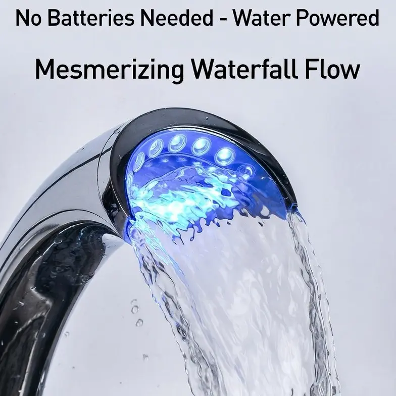 ·Vibrant Blue LED Illumination – Water-powered LED lights up instantly with flow, creating a beautiful glowing blue waterfall effect (perfect for day or night use).