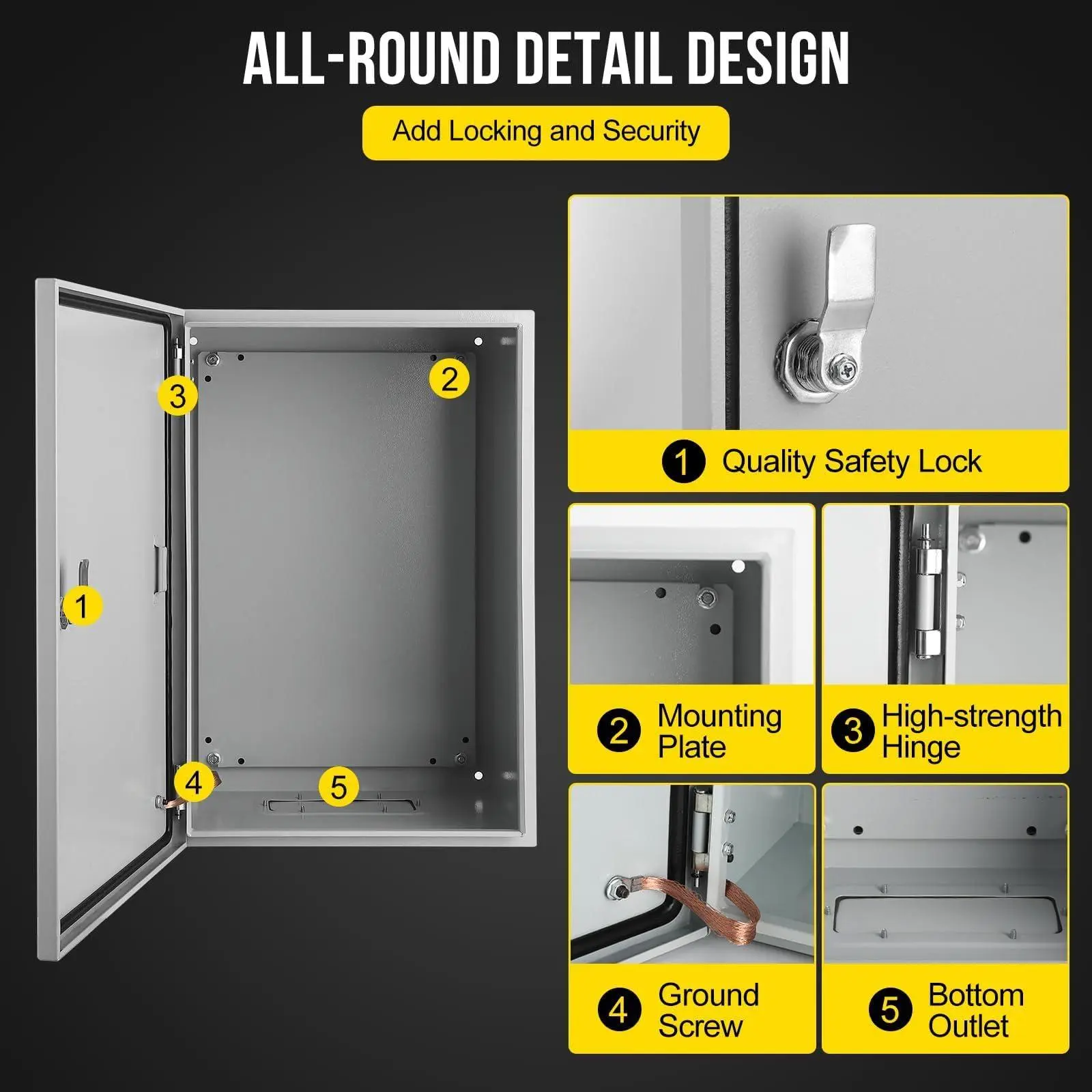 Secure Lock & Hinge: High-quality lock core and reinforced hinges ensure reliable security and keep your electrical equipment protected.