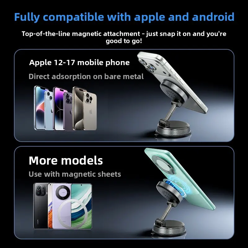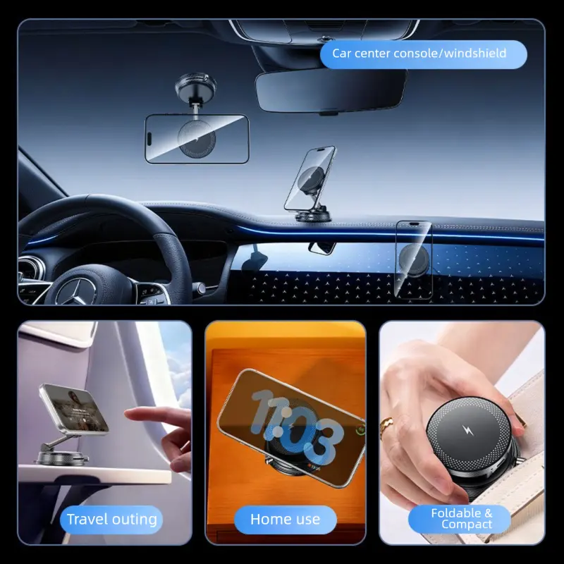 Magnetic Wireless Charging Car Phone Mount, 360 ° Rotatable Universal Holder