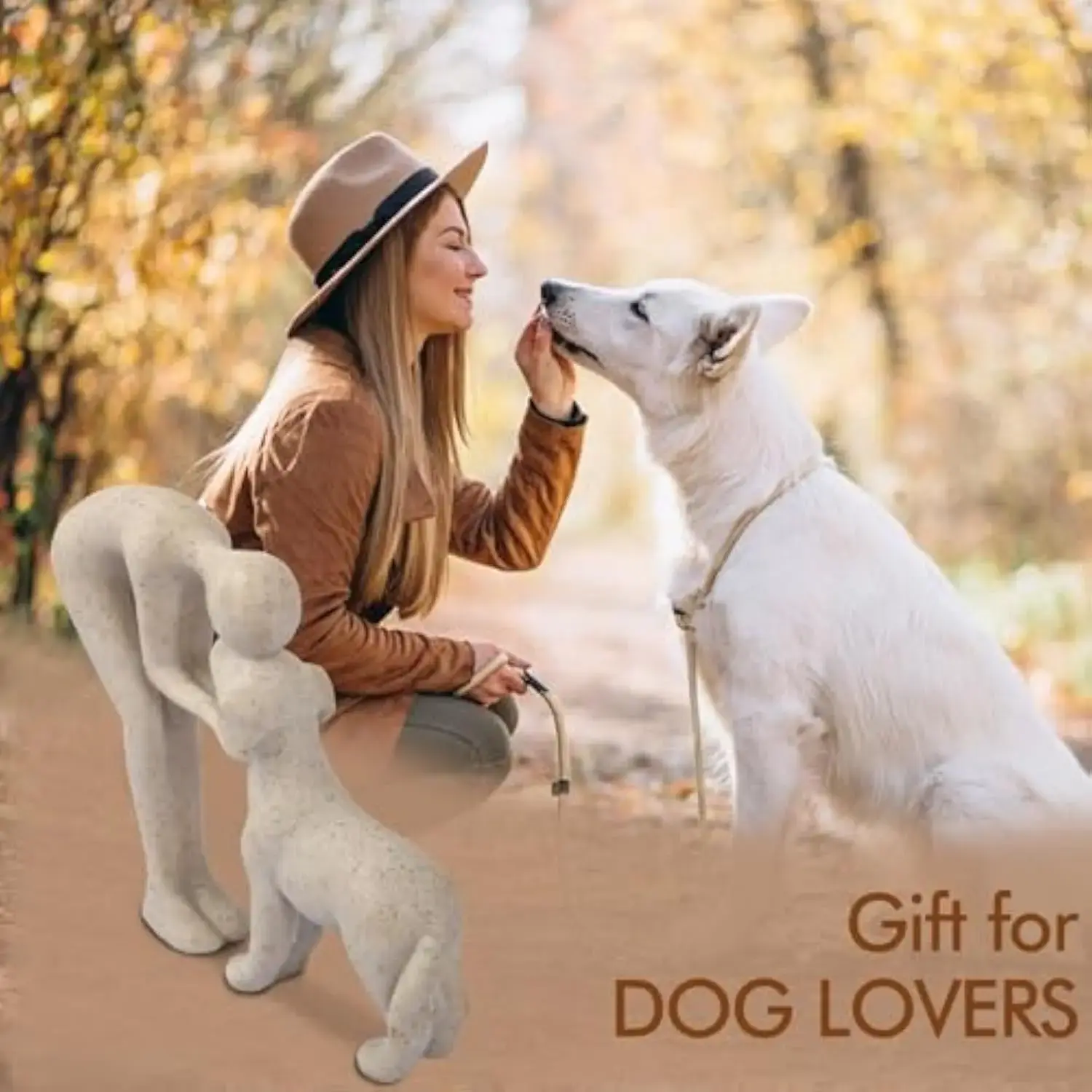 5. Modern human–dog bond sculpture, heartfelt pet memorial gift, handcrafted wooden-style decor, aesthetic minimalist statue, meaningful office desk display, anniversary decor for dog lovers