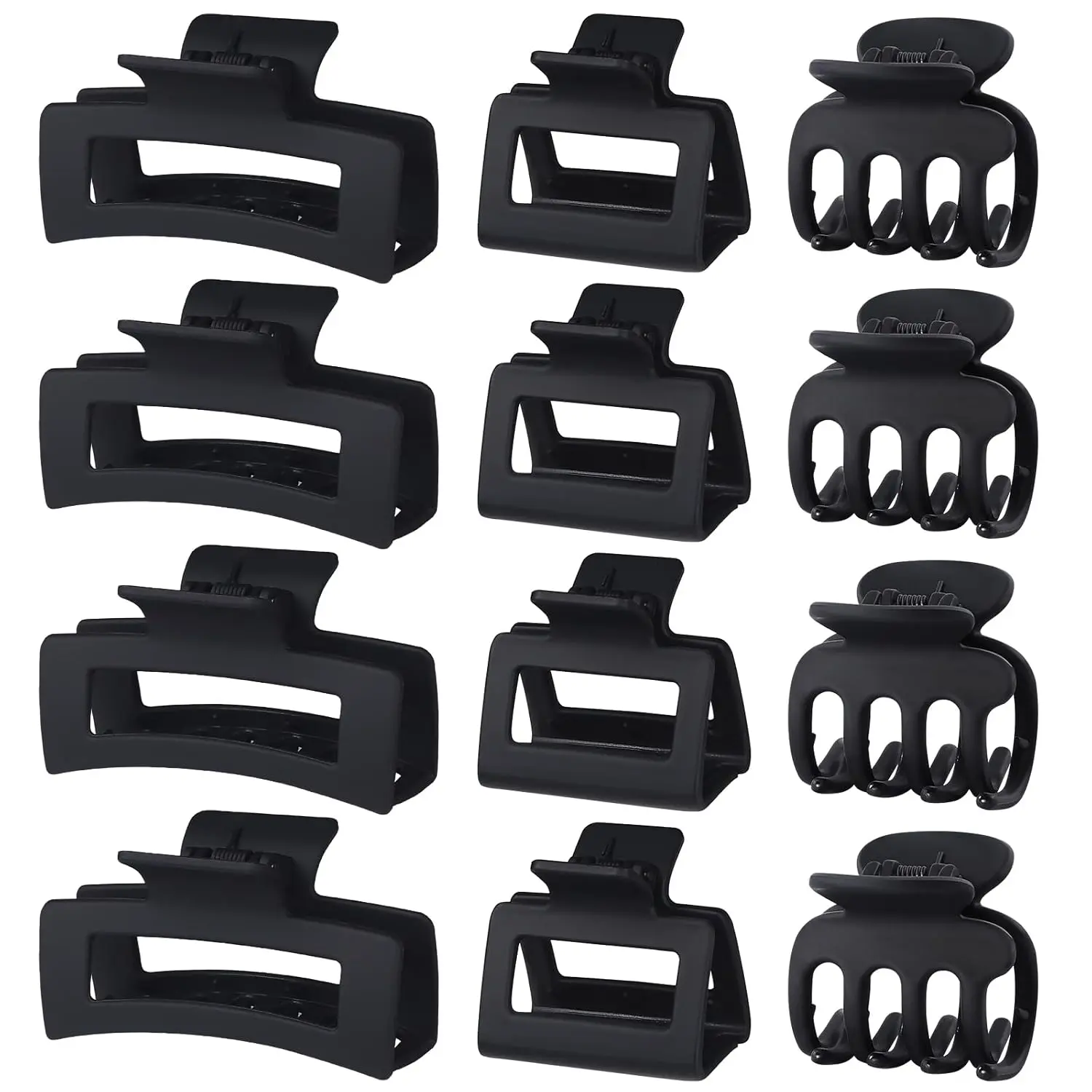 SMKSL 12 Pcs Hair Clips for Women 3 Styles Small Medium Large Claw Clips for Thin Thick Curly Hair, Strong Hold & Non-Slip Clips, Stylish Matte Plastic Hair Accessories Ideal Gifts for Women (Brown)
