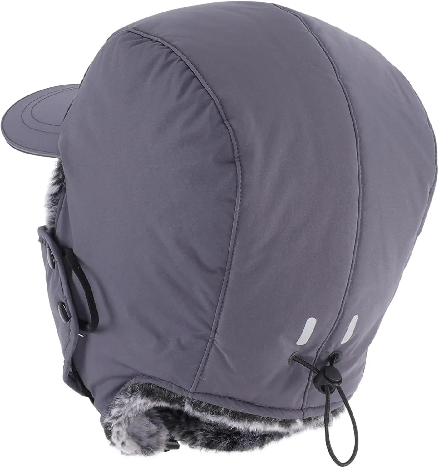 Premium waterproof outshell trapper hat with faux fur lining offers warmth an comfort.Reflective brim an back mark for visibility