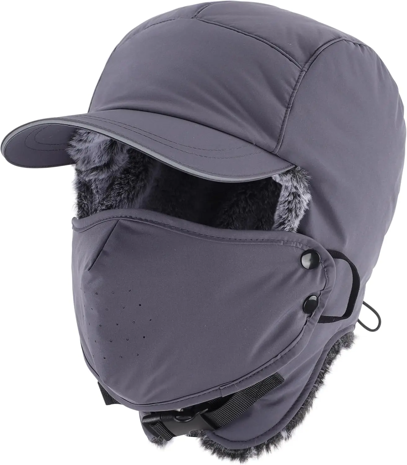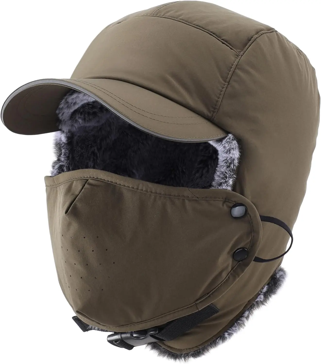 Waterproof Mens Faux Fur Trooper Trapper Hat Hunting Warm Winter Hat with Ear Flaps Visor Face Mask