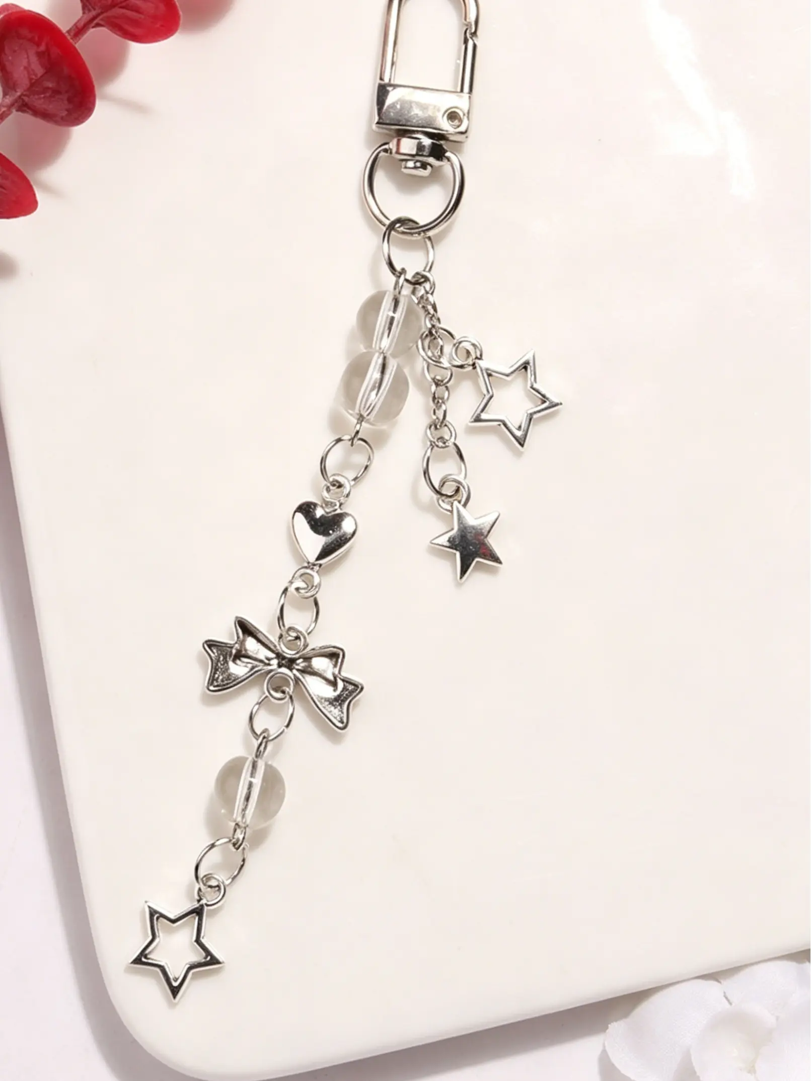 Sweet Bow Phone Chain, Heart Star Metal Keychain, Bag Pendant, Crystal Fringe Charm, Simple Multi-Functional Accessory