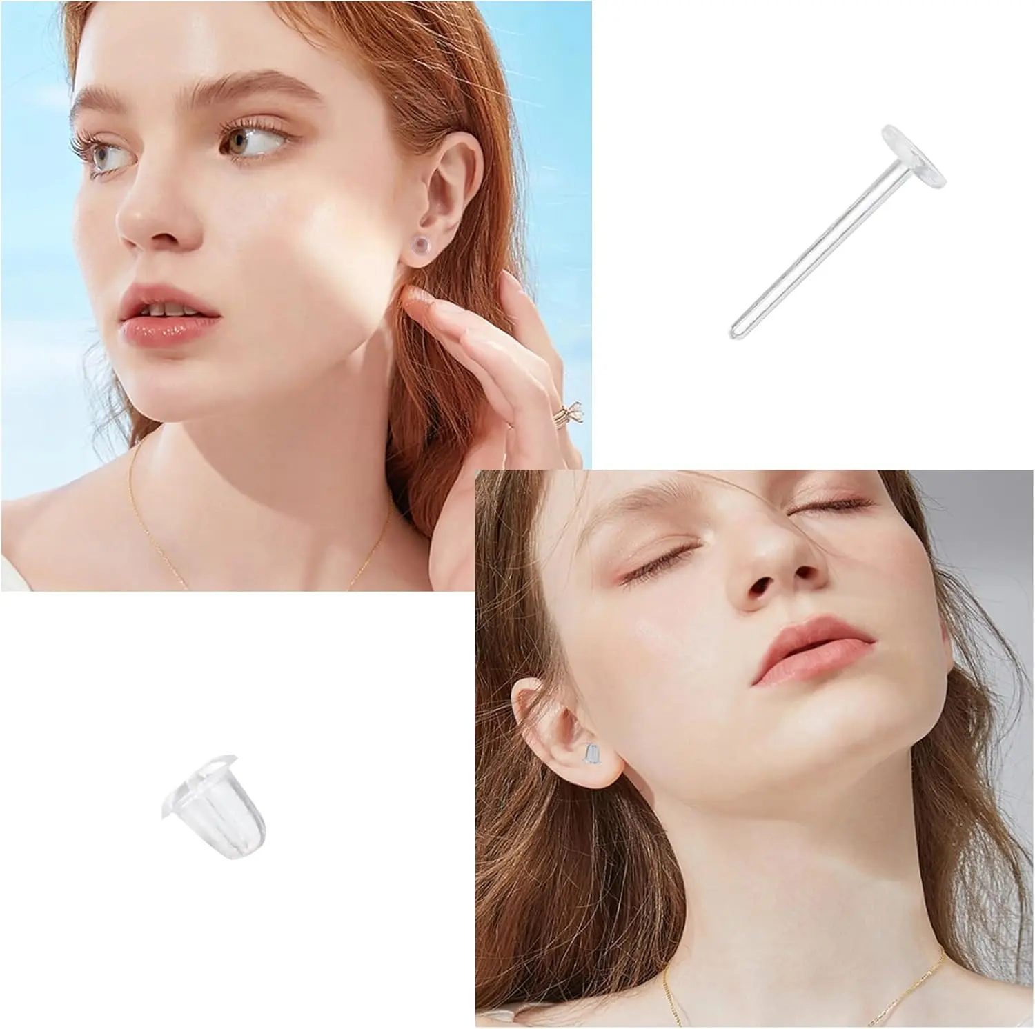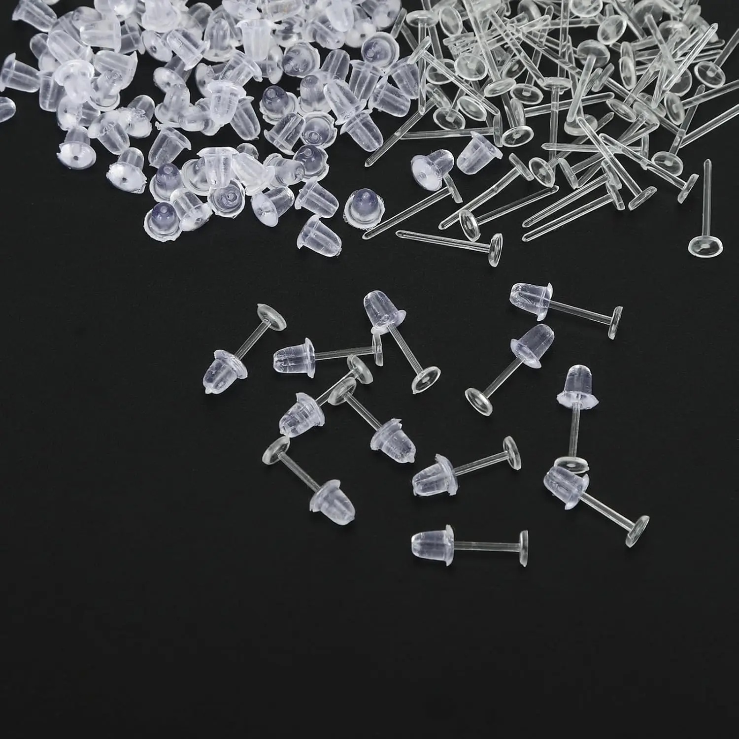 3mm Invisible Plastic Earrings Blank Pins Stud Tiny Head Findings DIY Supplies (200 pieces/100 Pairs)