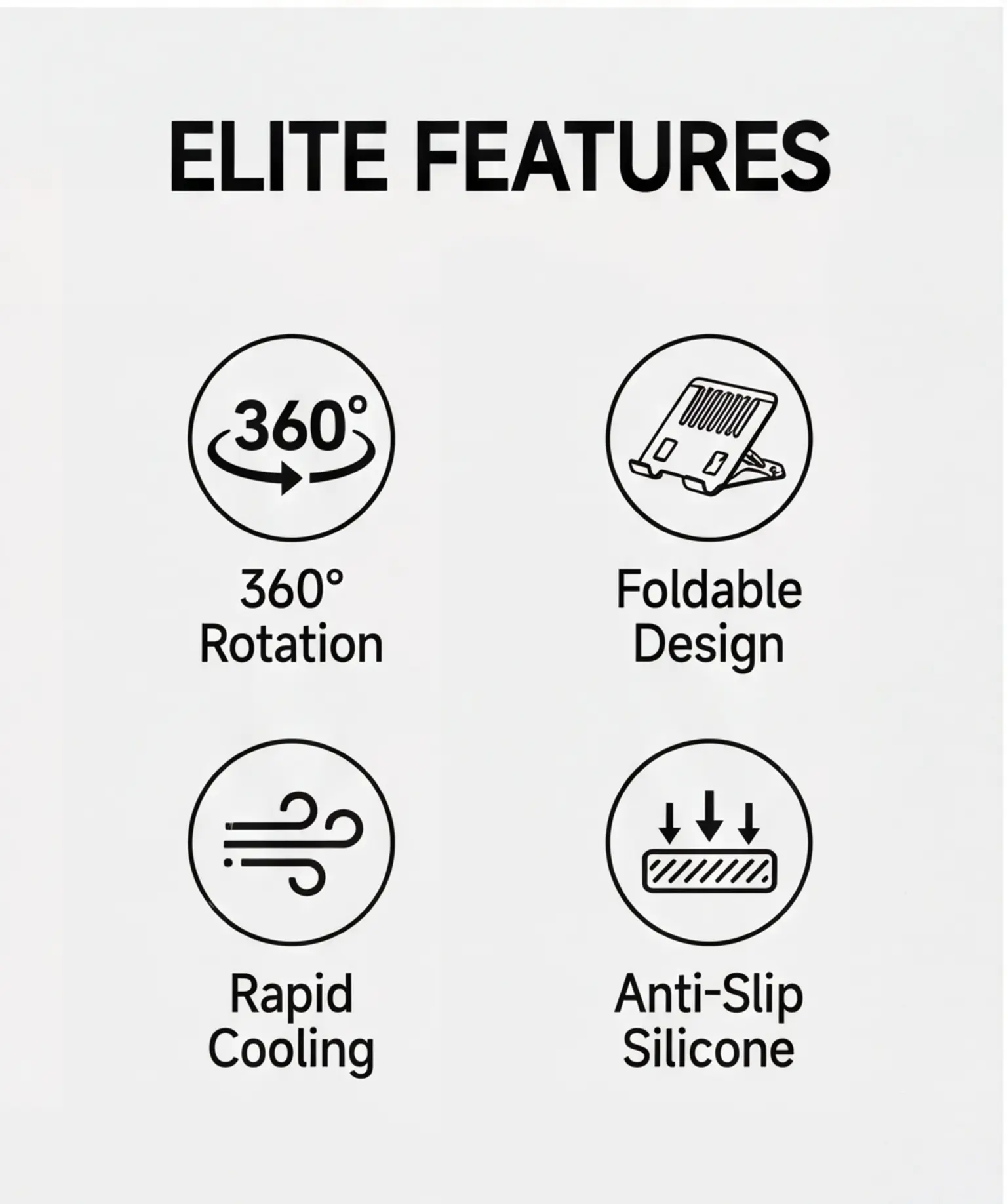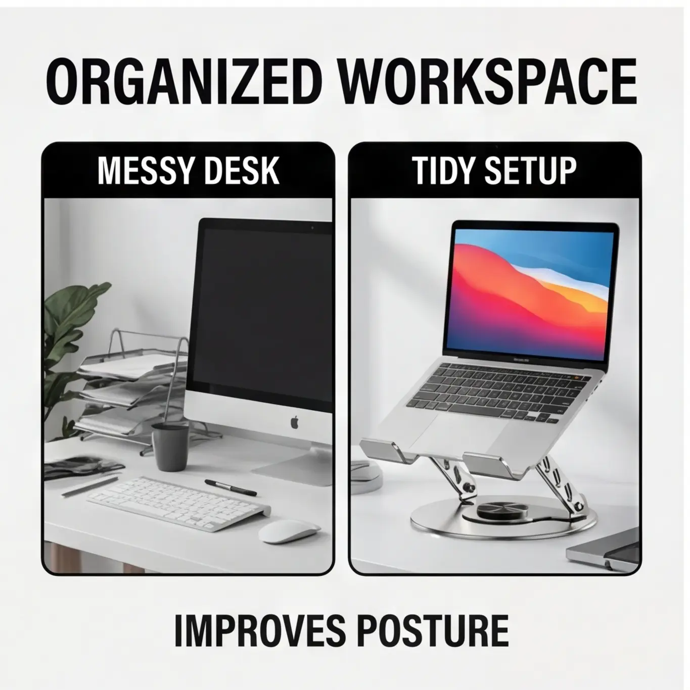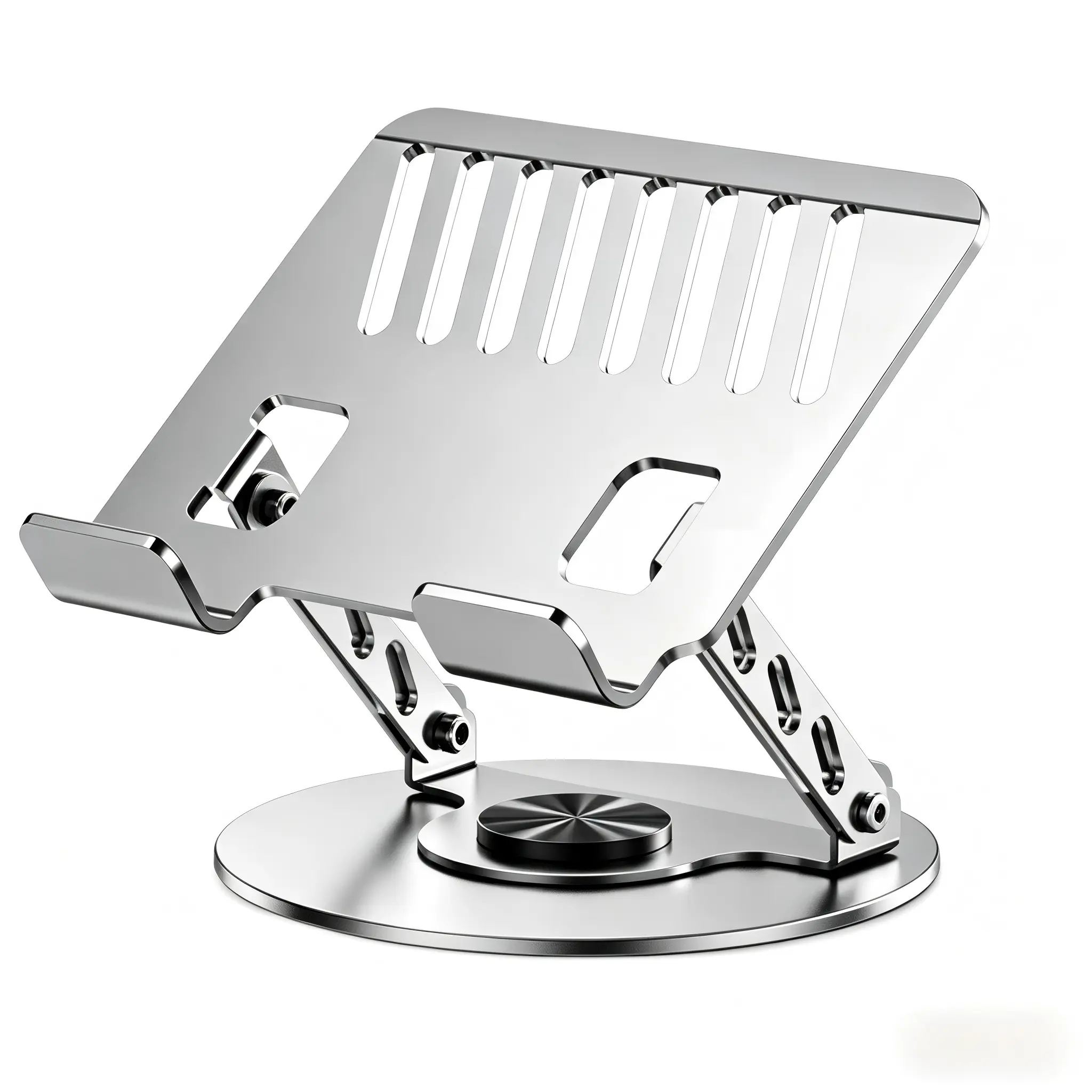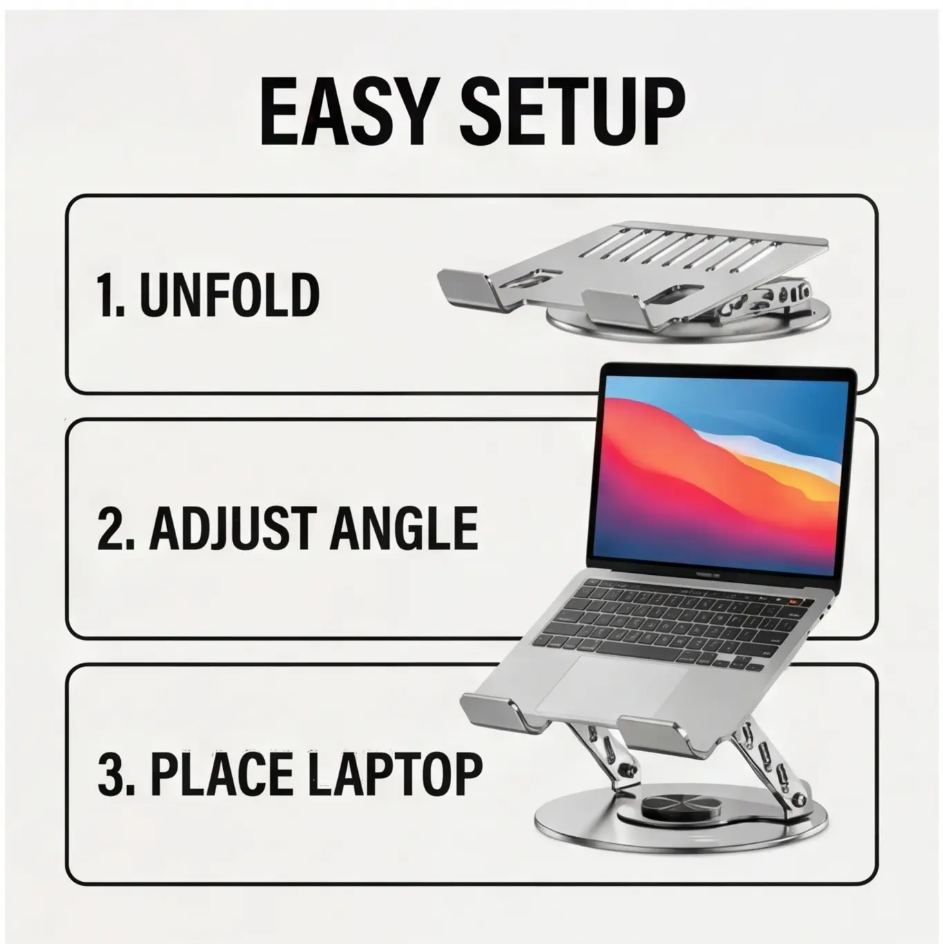 360° Rotating Swivel Base + Fully Adjustable Ergonomic DesignEquipped with a smooth 360° rotating base for seamless angle adjustment, plus multi-height tilt settings to customize your viewing position. This ergonomic carbon steel laptop riser relieves neck, shoulder, and back pain, corrects posture, and elevates your home office setup, gaming station, and student dorm workspace to pro-level comfort.