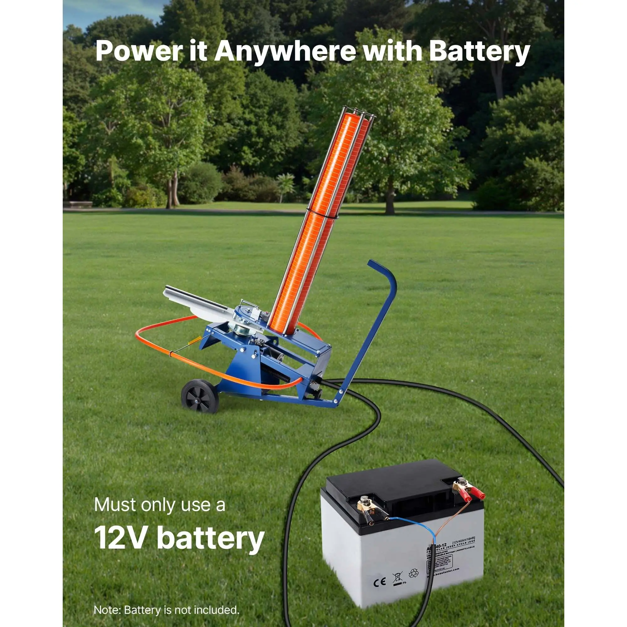 This VEVOR clay target thrower supports automatic cycle launching every 2 seconds, holds up to 75-80 clay targets at once, and delivers long-range throws over 55 yards. Train faster, launch farther and play smarter! Requires use with a 12V deep cycle battery (purchase separately, not included)