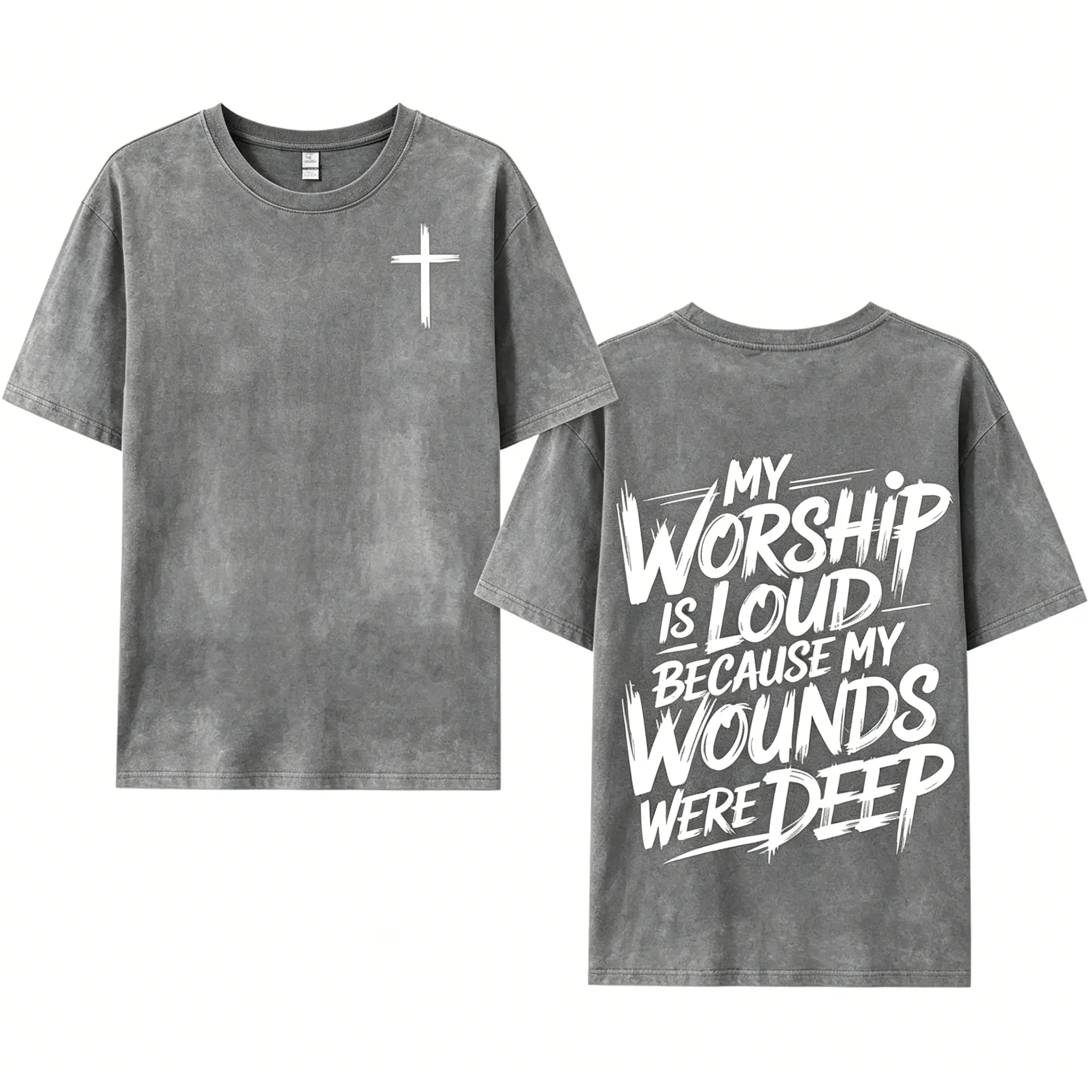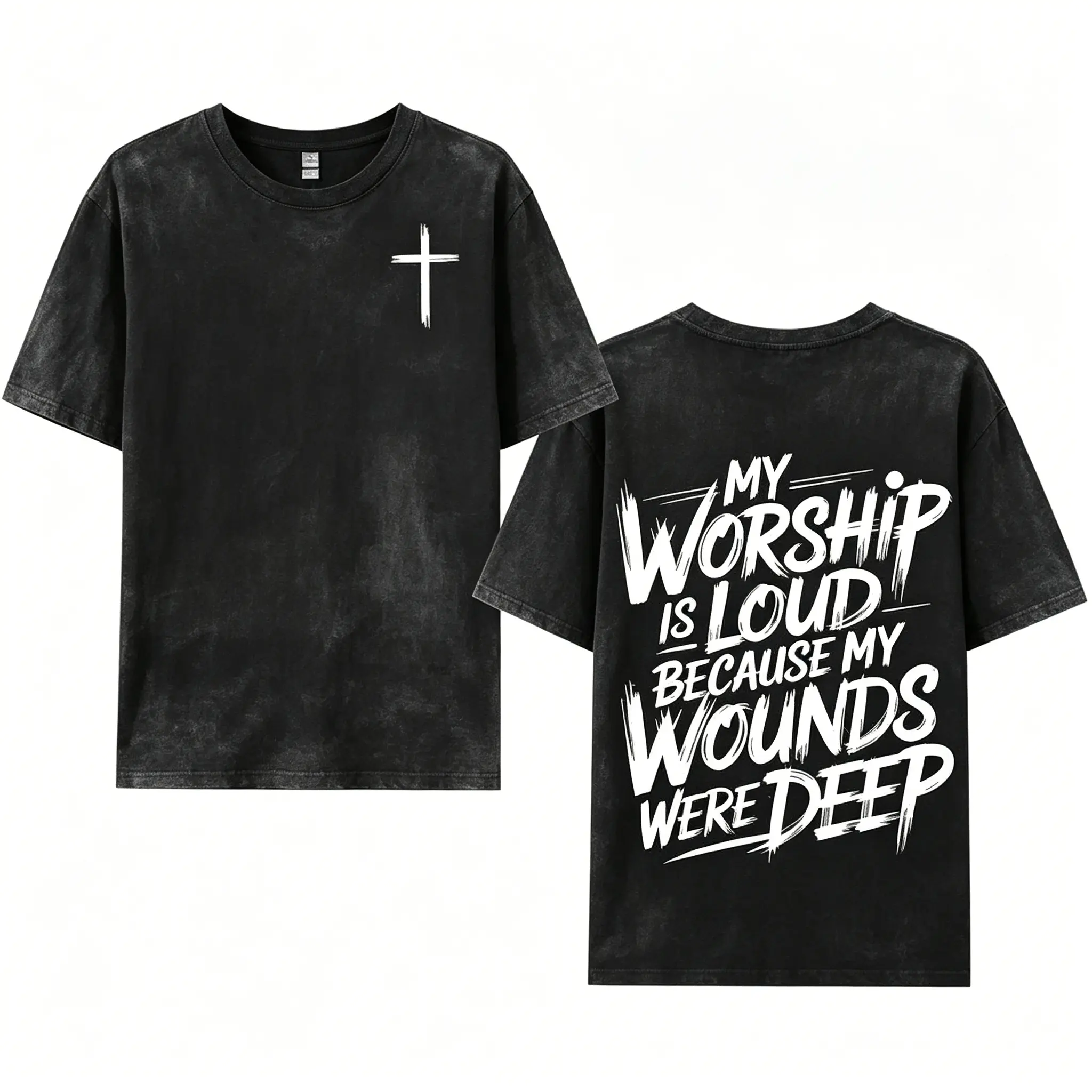 5. My Worship Is Loud Because My Wounds Were Deep Unisex Washed Christian Shirt, Christian Scripture T-Shirt, Vintage Retro Washed Shirt Double Sided Printed