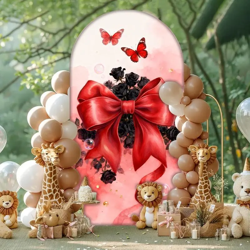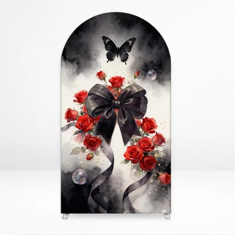 15-day Delivery Bow Roses Arch Backdrop Cover for Gothic Wedding and Events