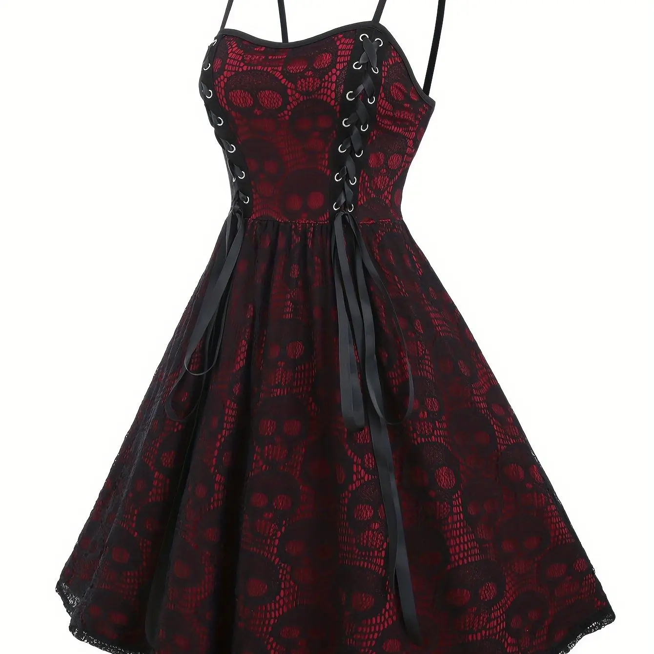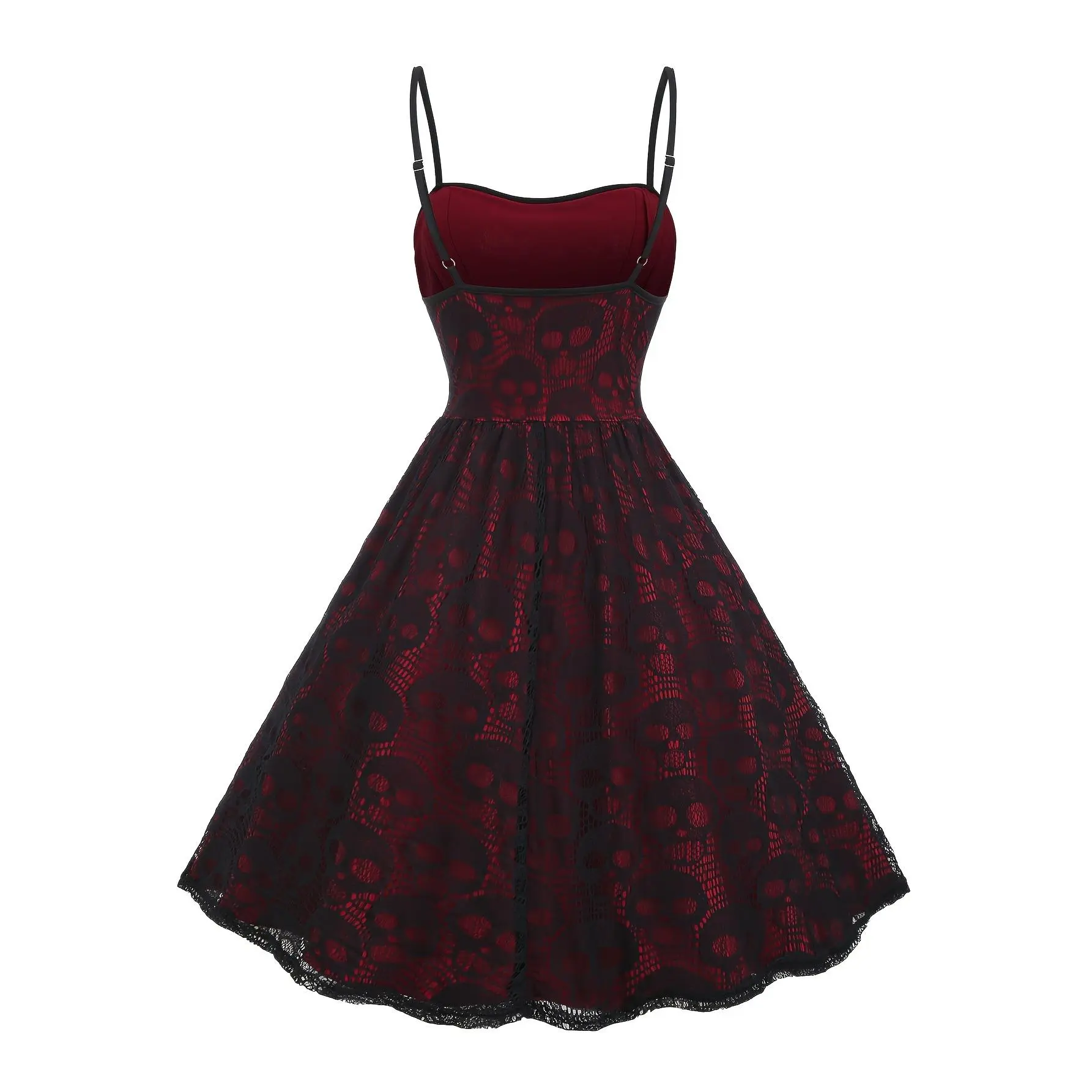Directional Development Lace Color-Blocking Eyelet Strap Dress