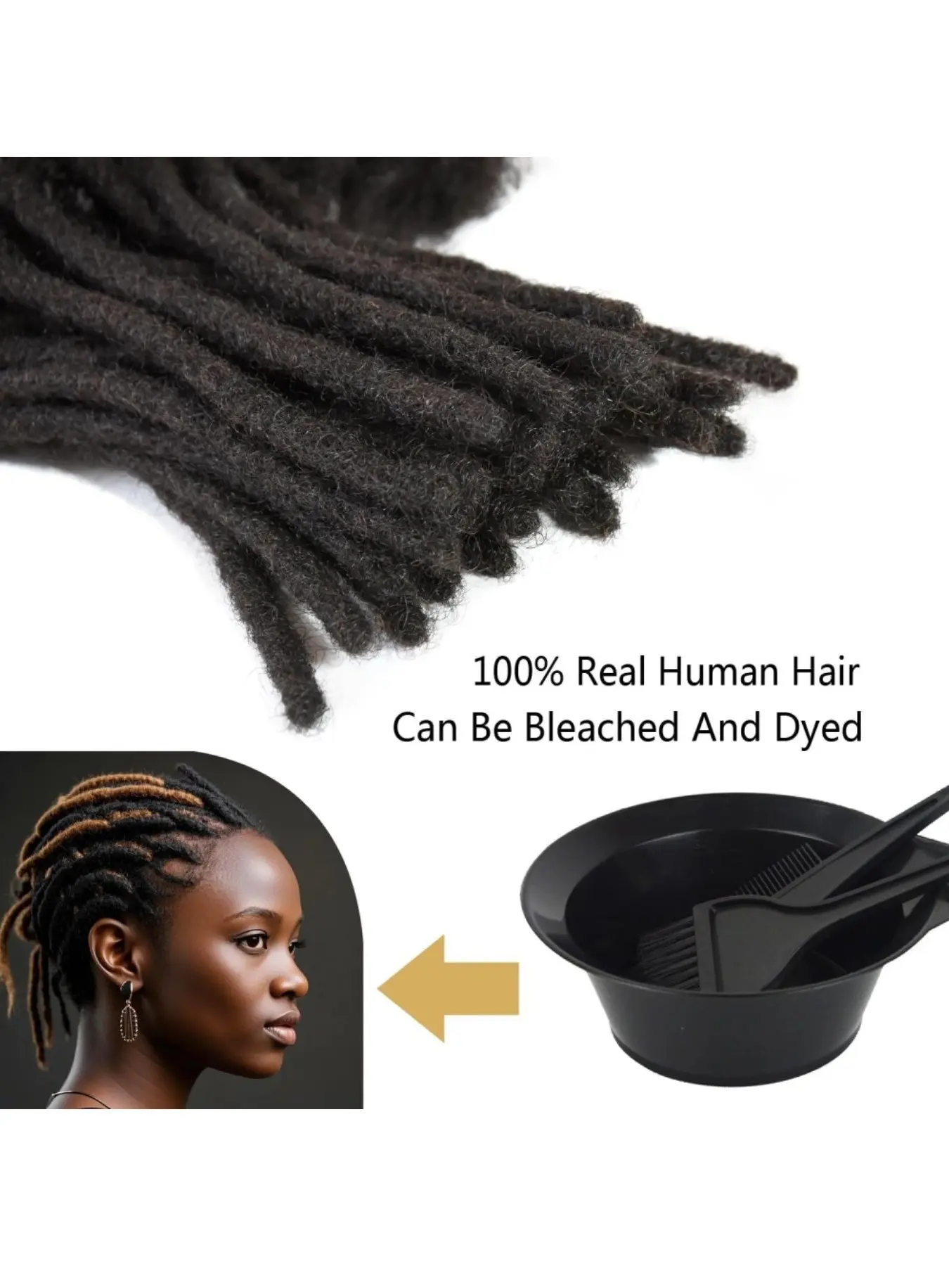 Human Hair Dreadlock Extensions Full Handmade Dreads Extensions Loc Extensions for Women/Men Can Be Dyed Curled Bleached (4-16 Inch 0.6cm 10-100 Strands)