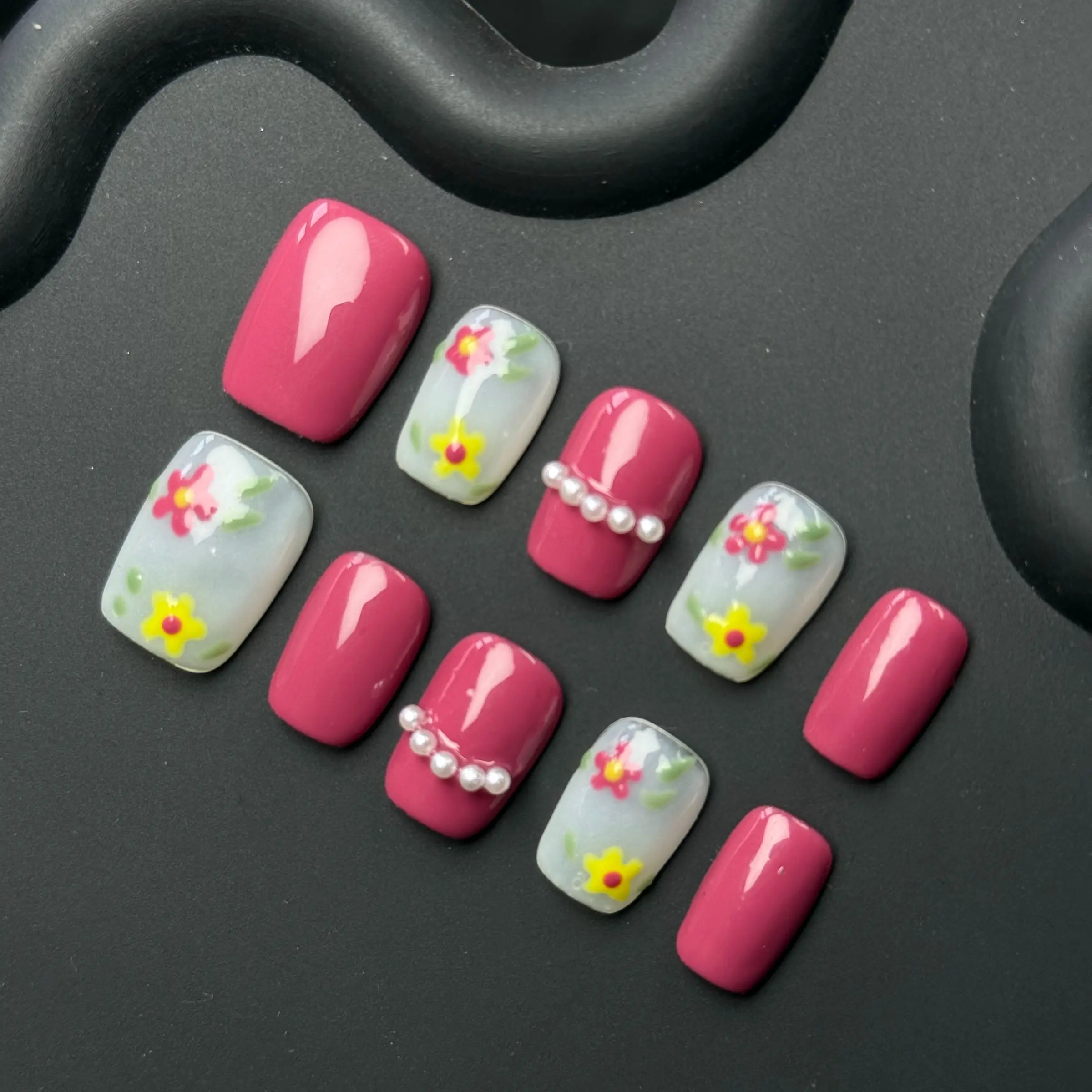 【Hand-Painted Flowers】: Adorned with exquisite hand-painted flowers, adding a unique and artistic touch to your nails.