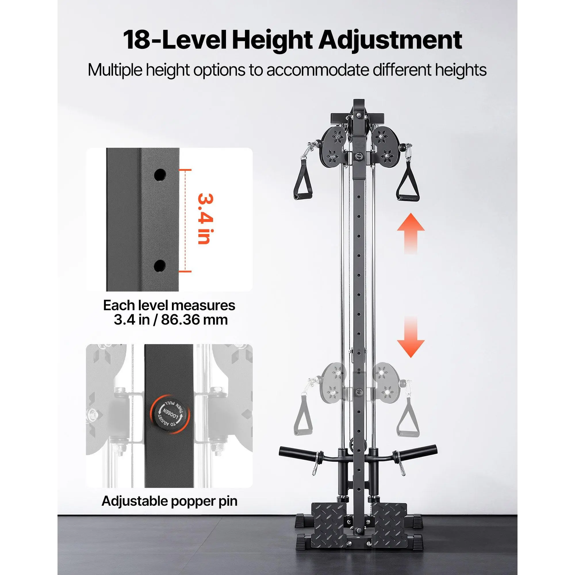 Our lat machine features 18 height settings, allowing you to train like a pro and achieve the ideal angle for presses, rows, flys, and more. It delivers full positioning freedom with zero wobble for smooth, controlled movement.