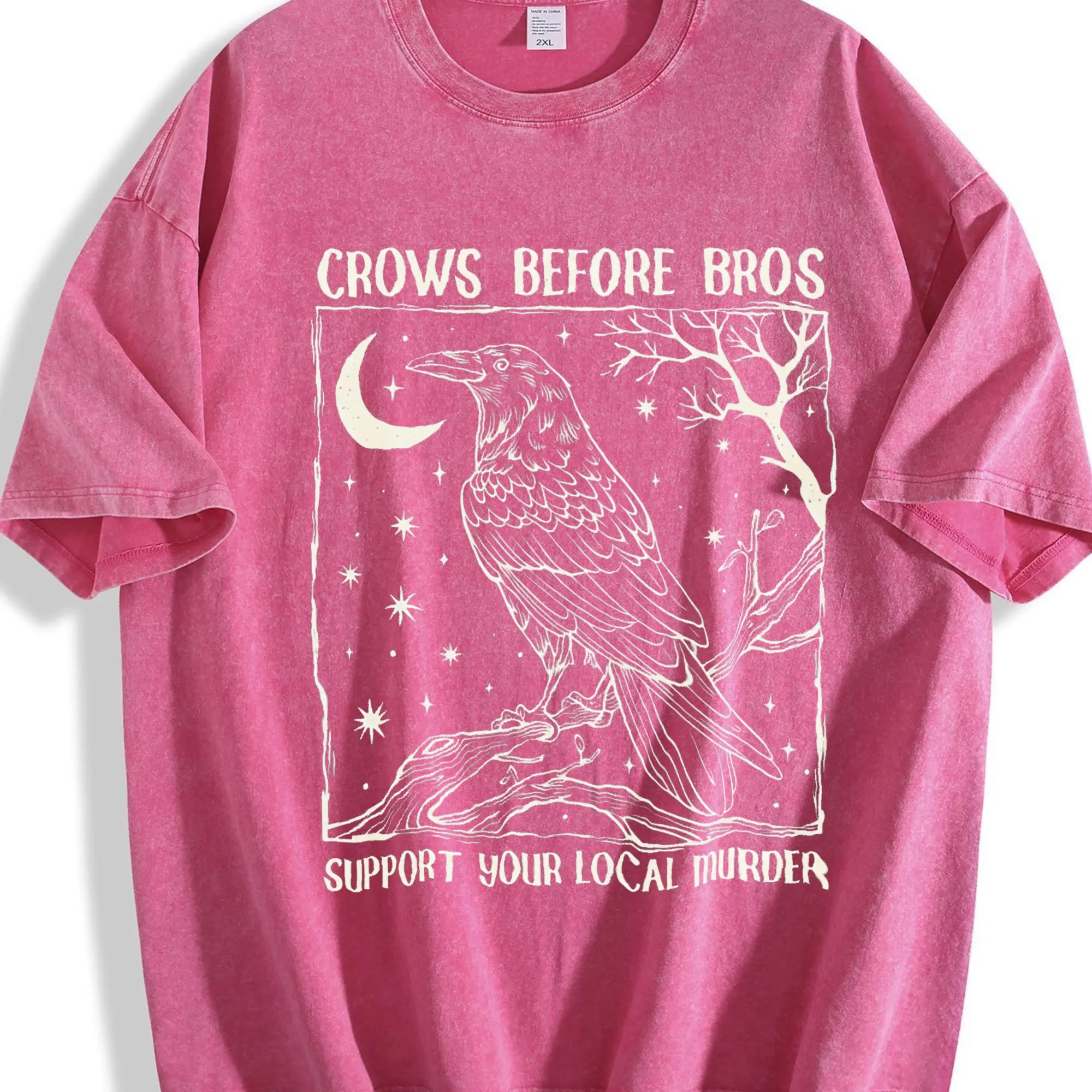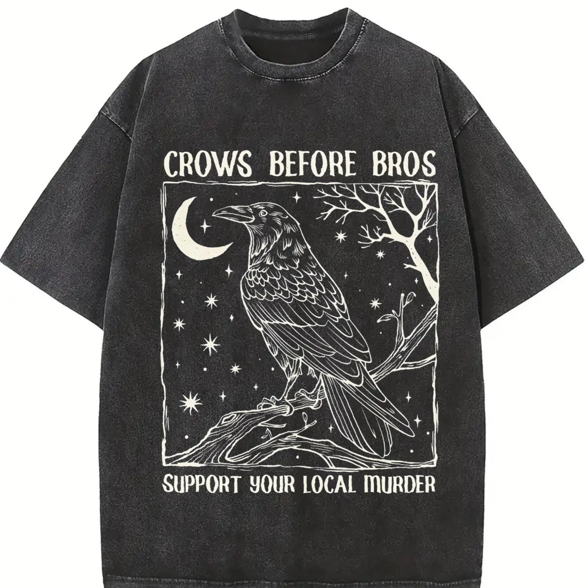 Funny Crows Before Bros Tshirt, Support Your Local Murder T-shirt, Feminist Women Shirt Dark Trendy Graphic Tee Cotton Womenswear Summer Streetwear