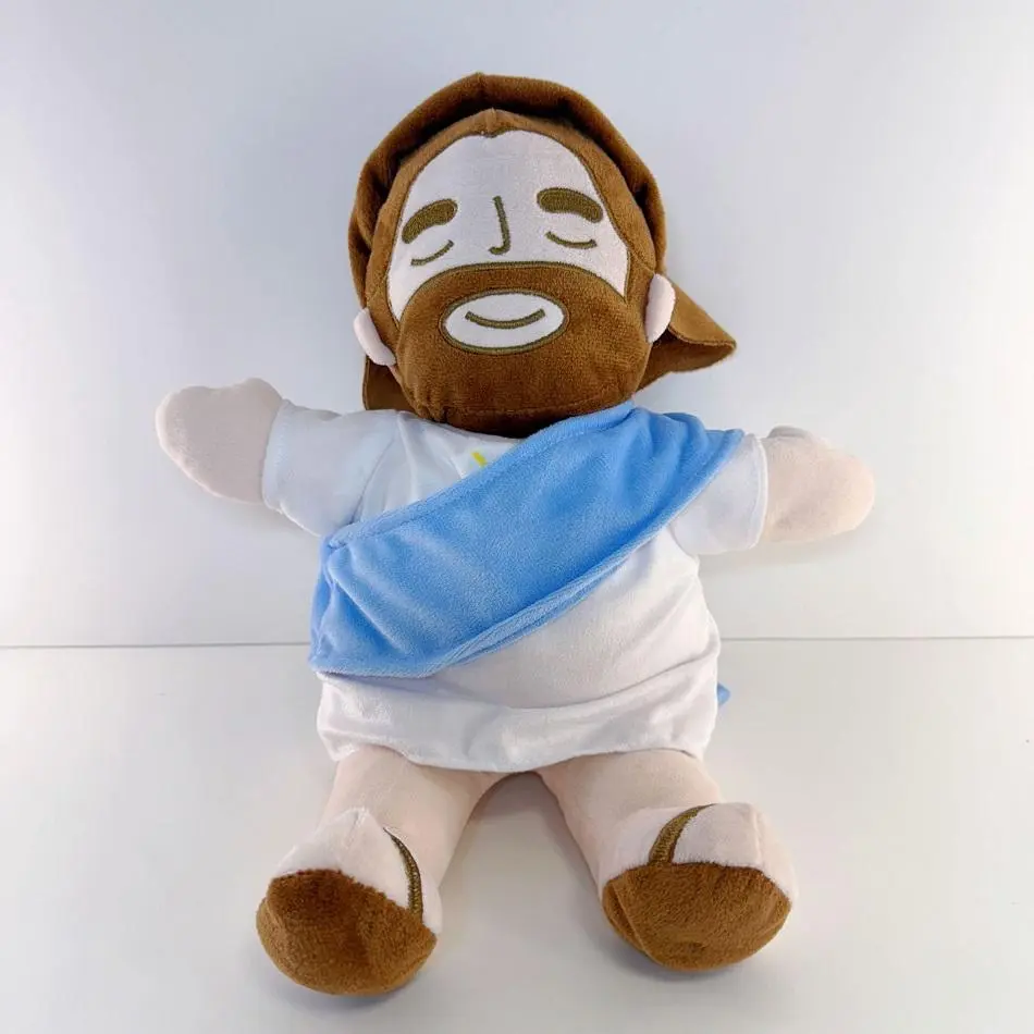 2026 New Children Music Soothing Breathing Doll Jesus Plush Toy Sleep Companion Toy Sound and Light Doll Holiday Gifts for Kids