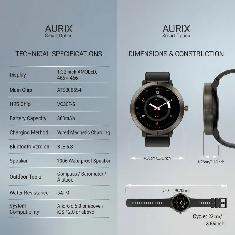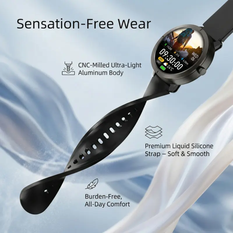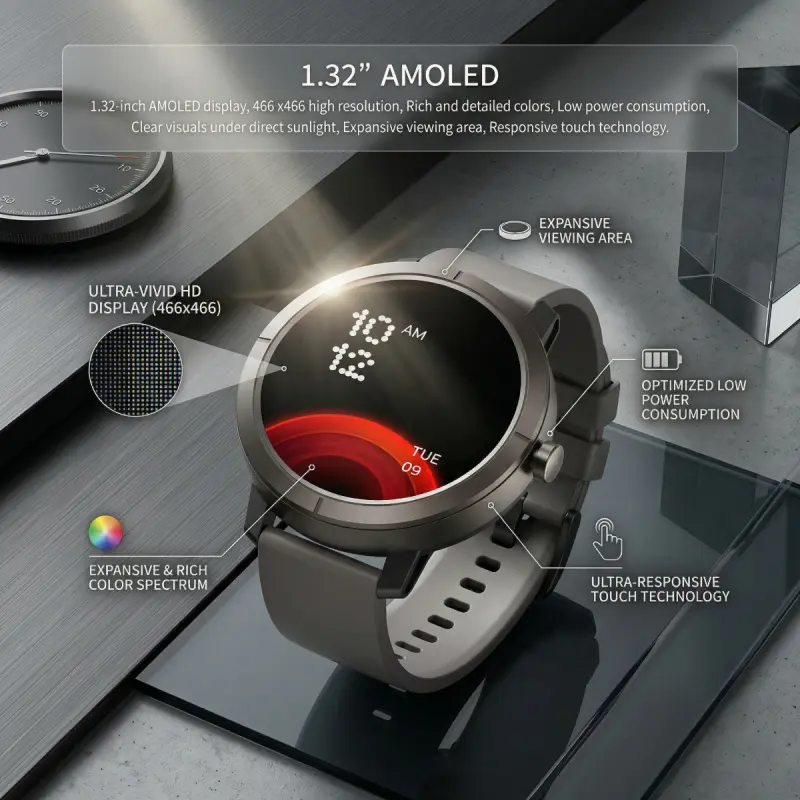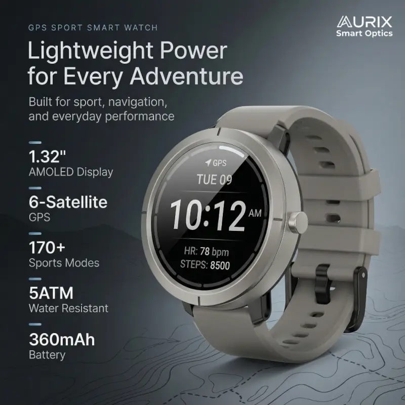 DM76 GPS Sport Smart Watch 1.32 Inch AMOLED HD Round Display 170+ Sports Modes 5ATM Water Resistant Heart Rate Tracking for Outdoor Running and Daily Wear