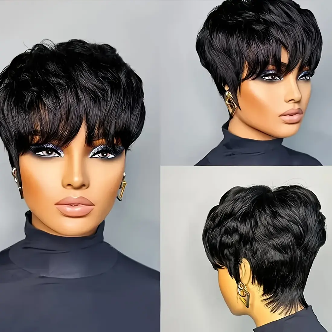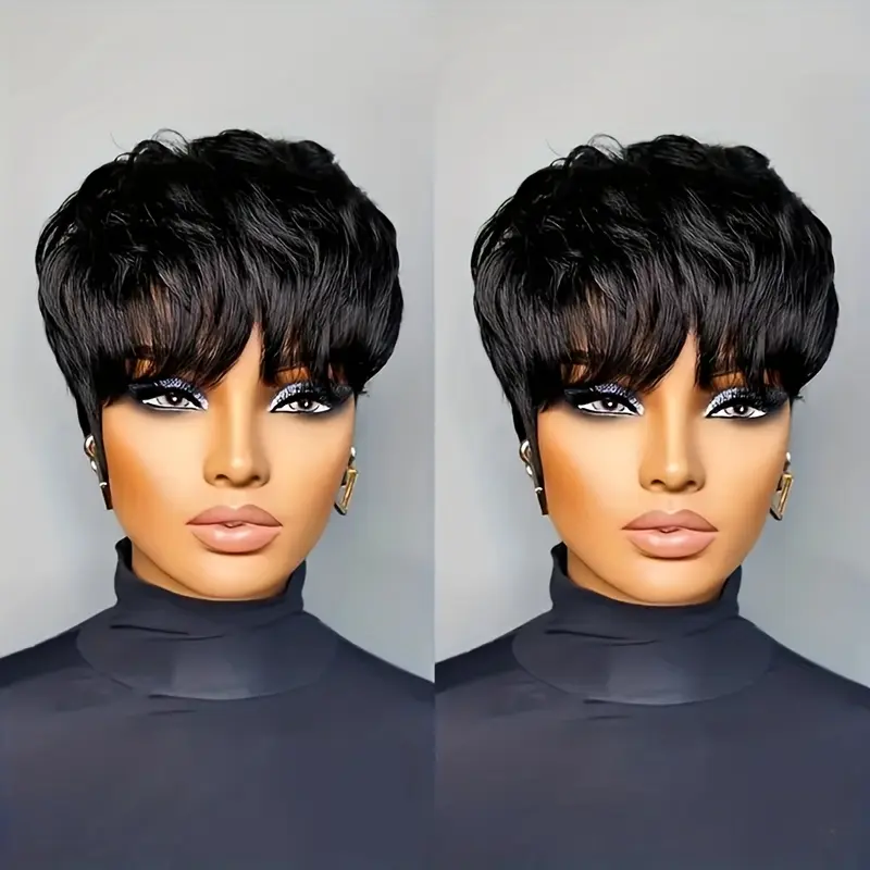 150% Densityy Human Hair Pixie Cut Wig - Glueless Straight Hair With Bangs, Machine-Made Elegant Hairpiece For Halloween, Christmas, Cosplay - Everyday & All Ethnicities, Short Hair Wig, Costume Accessory