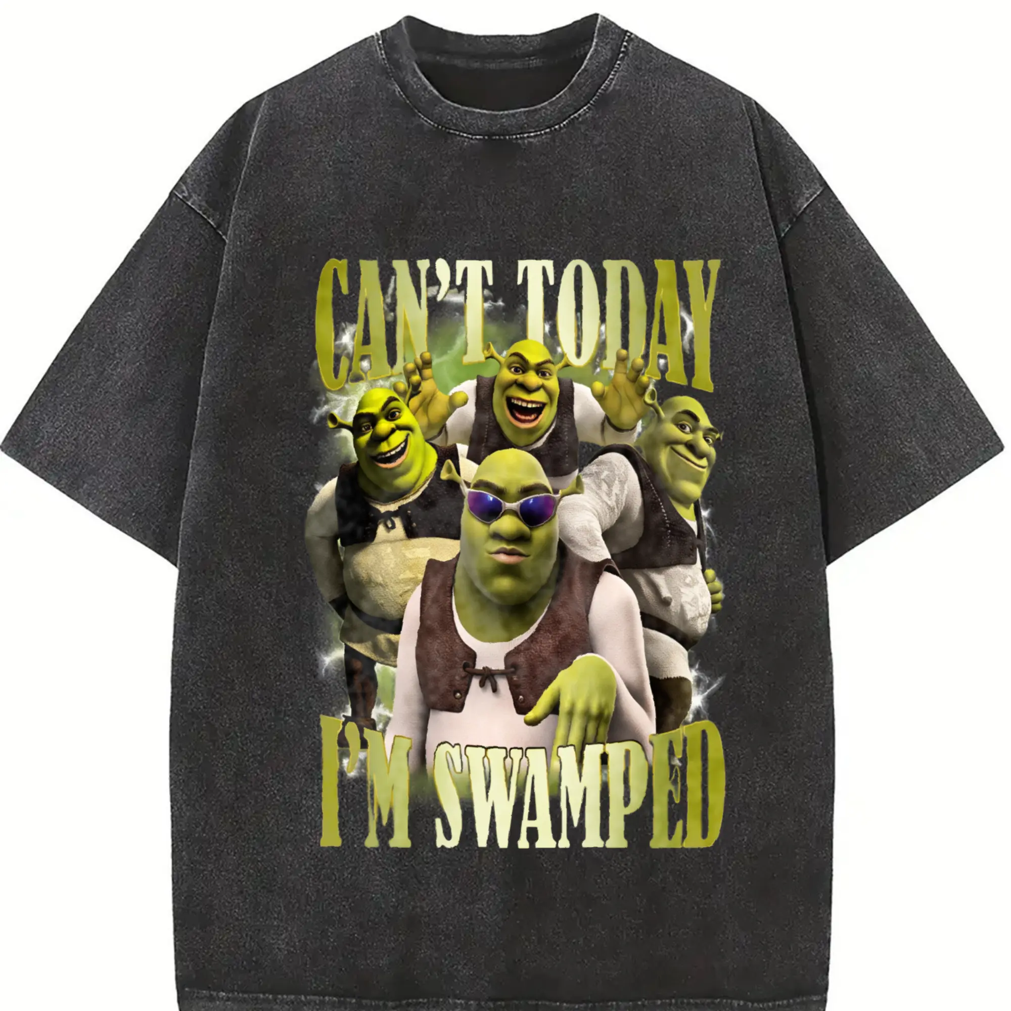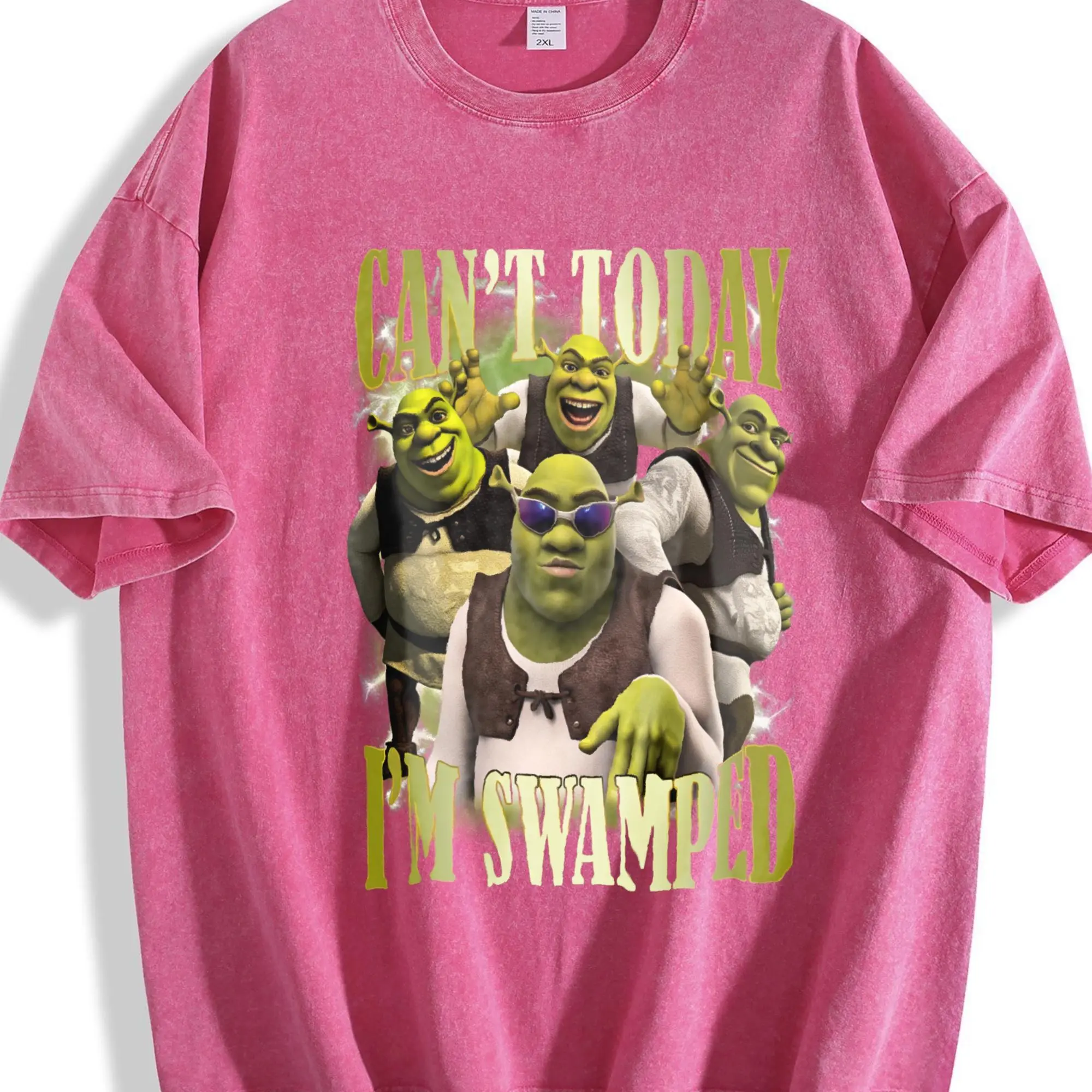 Funny Shrekk Carton Characters Tshirt, Shrekk Can't Todat I'm Swamped Shirt, Trendy Meme Tee, Oversize Gift Unisex Shirt
