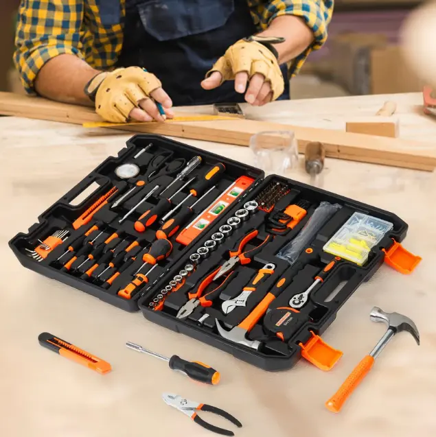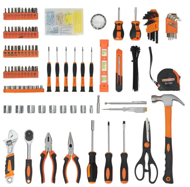 242 Piece Tool Set Household Hand Kit with Plastic Toolbox for Home Maintenance Dorm DIY Projects, Orange, 17x13x3"
