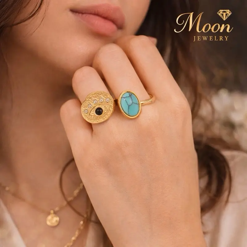 Evil Eye Turquoise Open Ring – 18K Gold PVD Stainless Steel