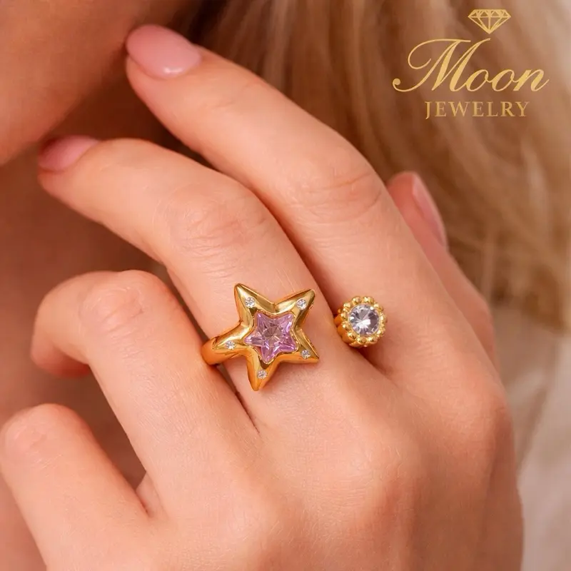 Star Crystal Statement Ring – 18K Gold PVD Stainless Steel