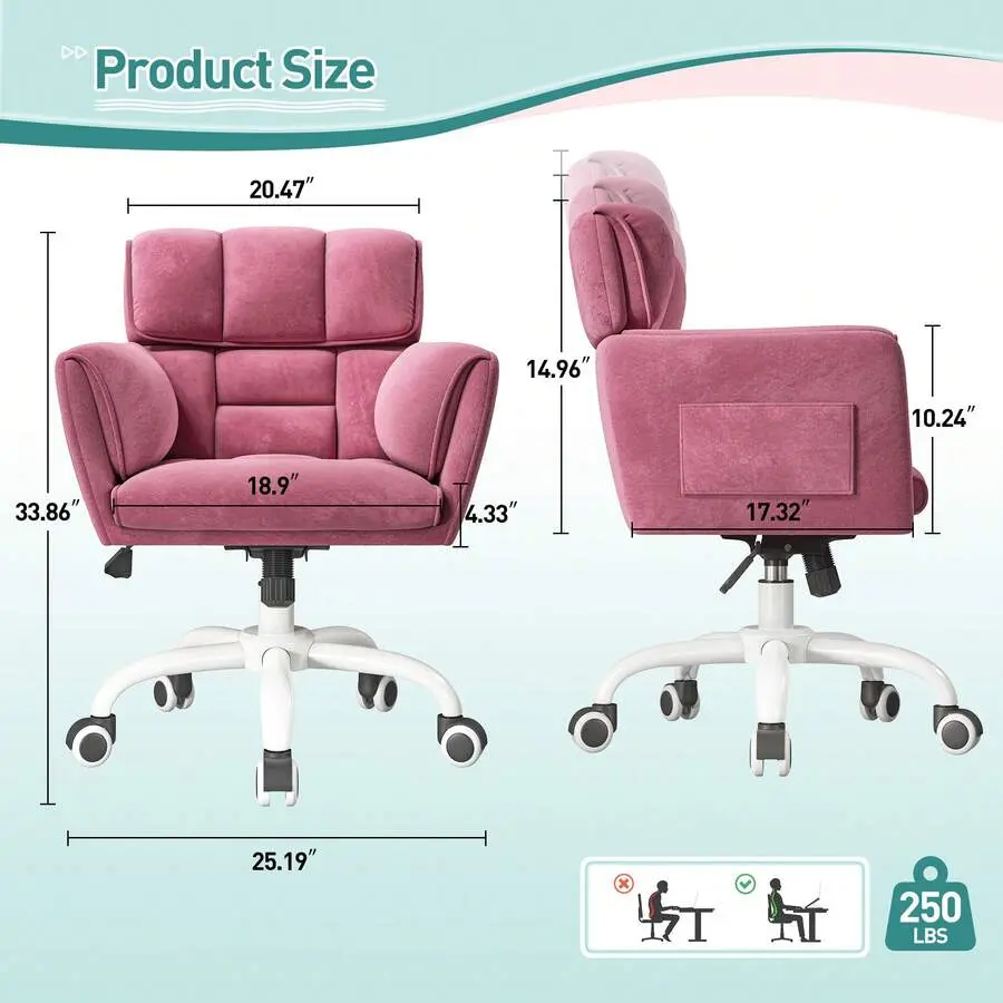 1.[Plush Comfort & Breathable Support] This chair features soft, breathable material that keeps you cool and comfortable all day.Perfect for vanity areas, workspaces, or dorm rooms."