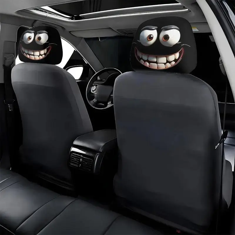 2pcs Funny Big-Eyed Grinning Cartoon Car Seat Headrest Covers, Universal Fit for Road Trips, Halloween Christmas Decor, Car Interior Decor