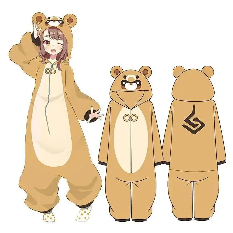 Jumpsuits Winter Women Adult Genshin Impact Xiangling Guoba Pajamas Flannel Plush Adult Cartoon Cosplay Halloween Costume