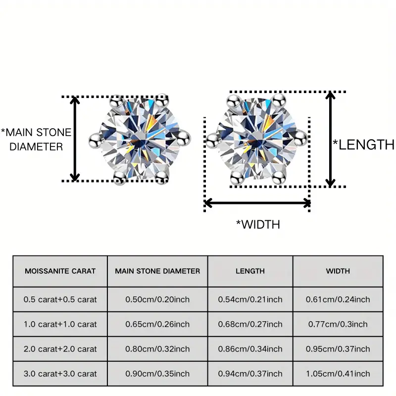 1 Pair of 0.5/1/2/3 Carat S925 Moissanite Earrings, Stylish And Sophisticated, Perfect for Holiday Gifts, Ideal for Friends And Birthdays, Appropriate for Different Events, For Teenager